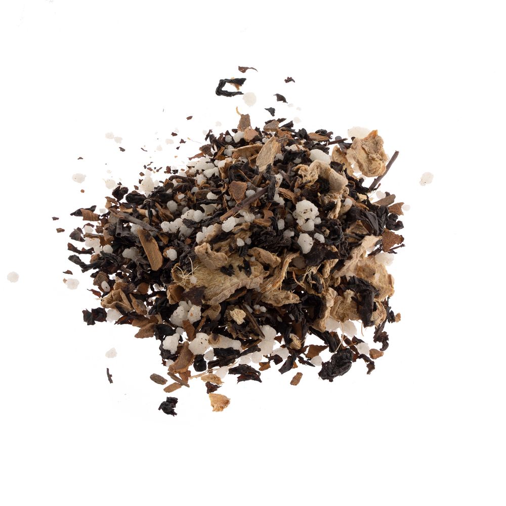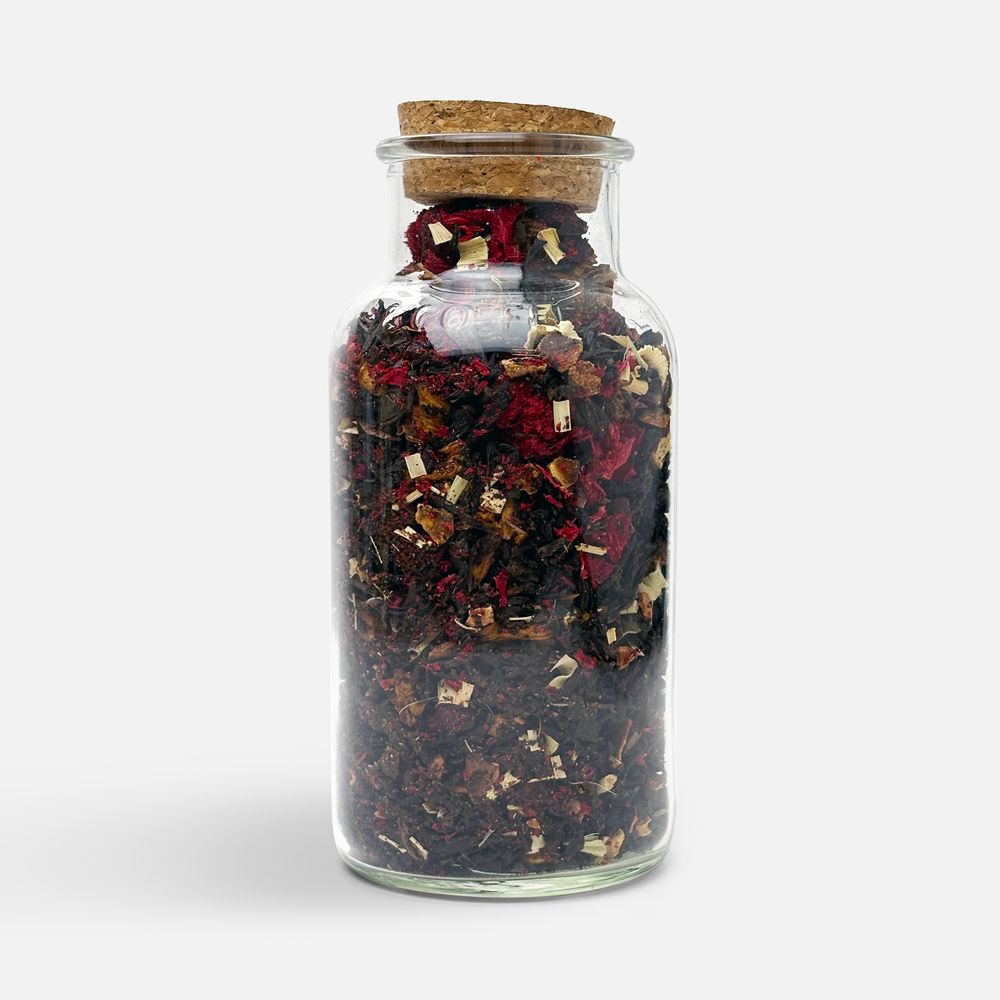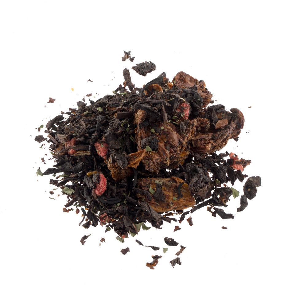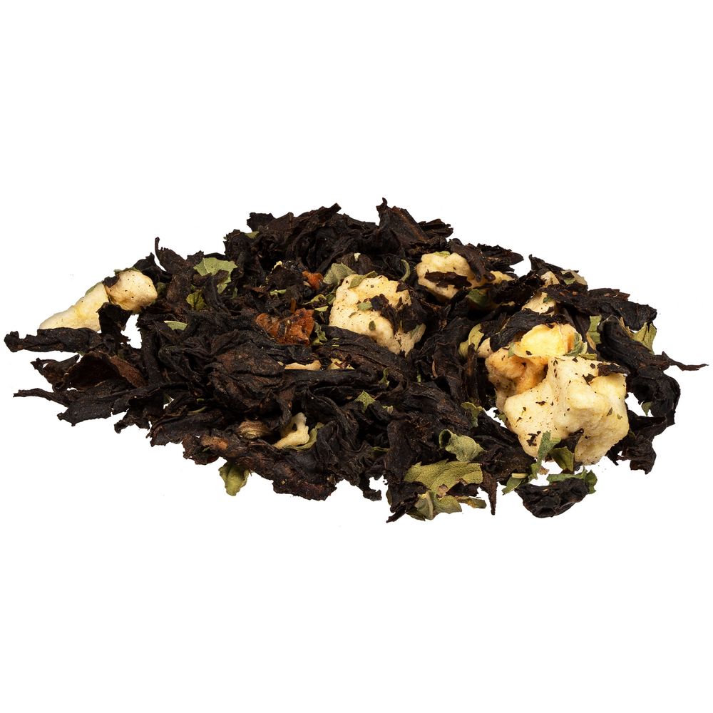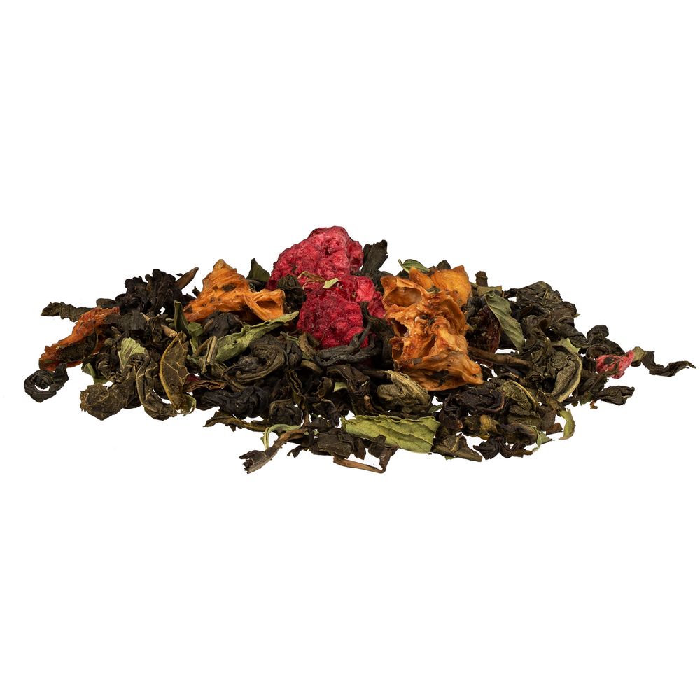 Черный крупнолистовой чай с кусочками ананаса, вишни, лемонграссом, цветками и коркой граната обладает многогранной палитрой вкуса и аромата. В состав чая входят только натуральные ингредиенты, а чайные листья предварительно вымачиваются в соке ананаса: вкус напитка становится особо насыщенным и обогащенным.