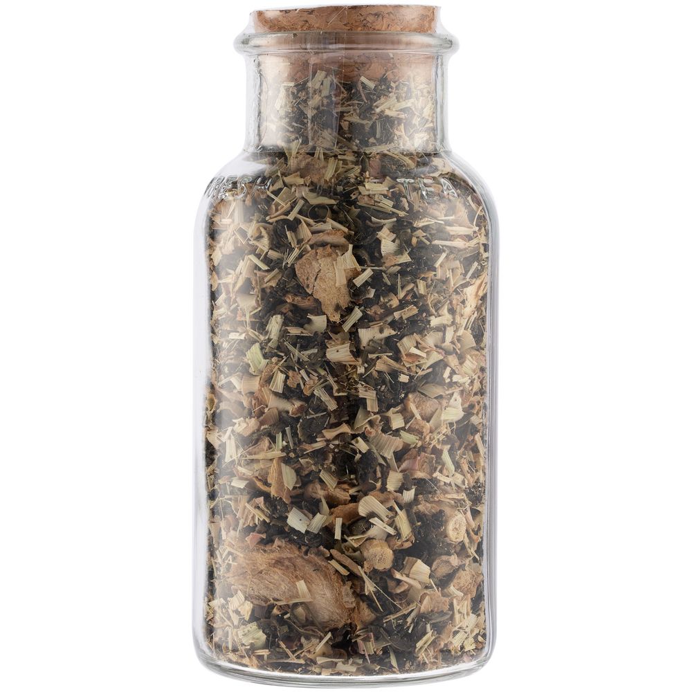 Состав: чай зеленый байховый крупнолистовой, кусочки имбиря, сок имбиря, лемонграсс.