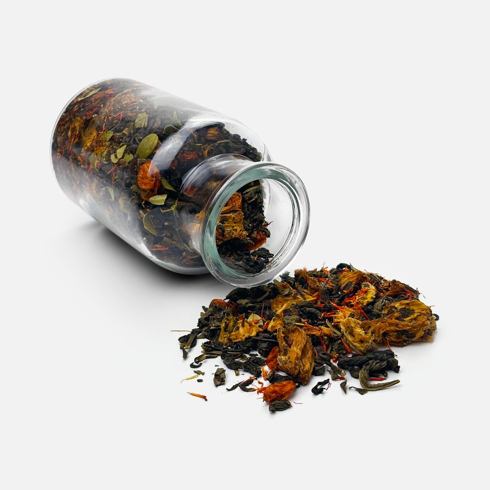 Зеленый крупнолистовой чай с соком имбиря, яблоком, гвоздикой и розовым перцем обладает многогранной палитрой вкуса и аромата. В состав чая входят только натуральные ингредиенты, а чайные листья предварительно вымачиваются в имбирном соке: вкус напитка становится особо насыщенным и обогащенным. «Сокочай» станет прекрасным подарком для любителей необычных вкусовых сочетаний и здорового образа жизни.