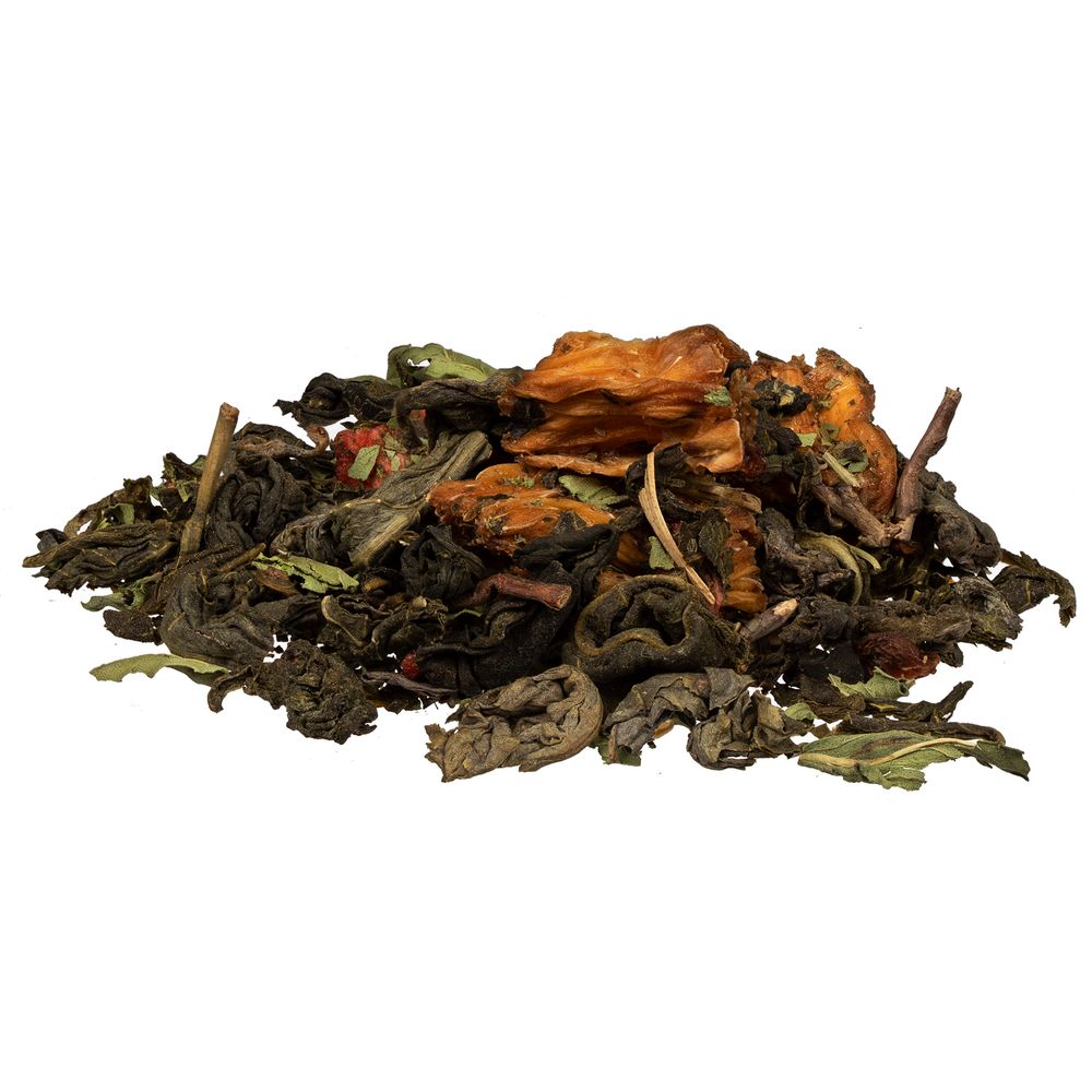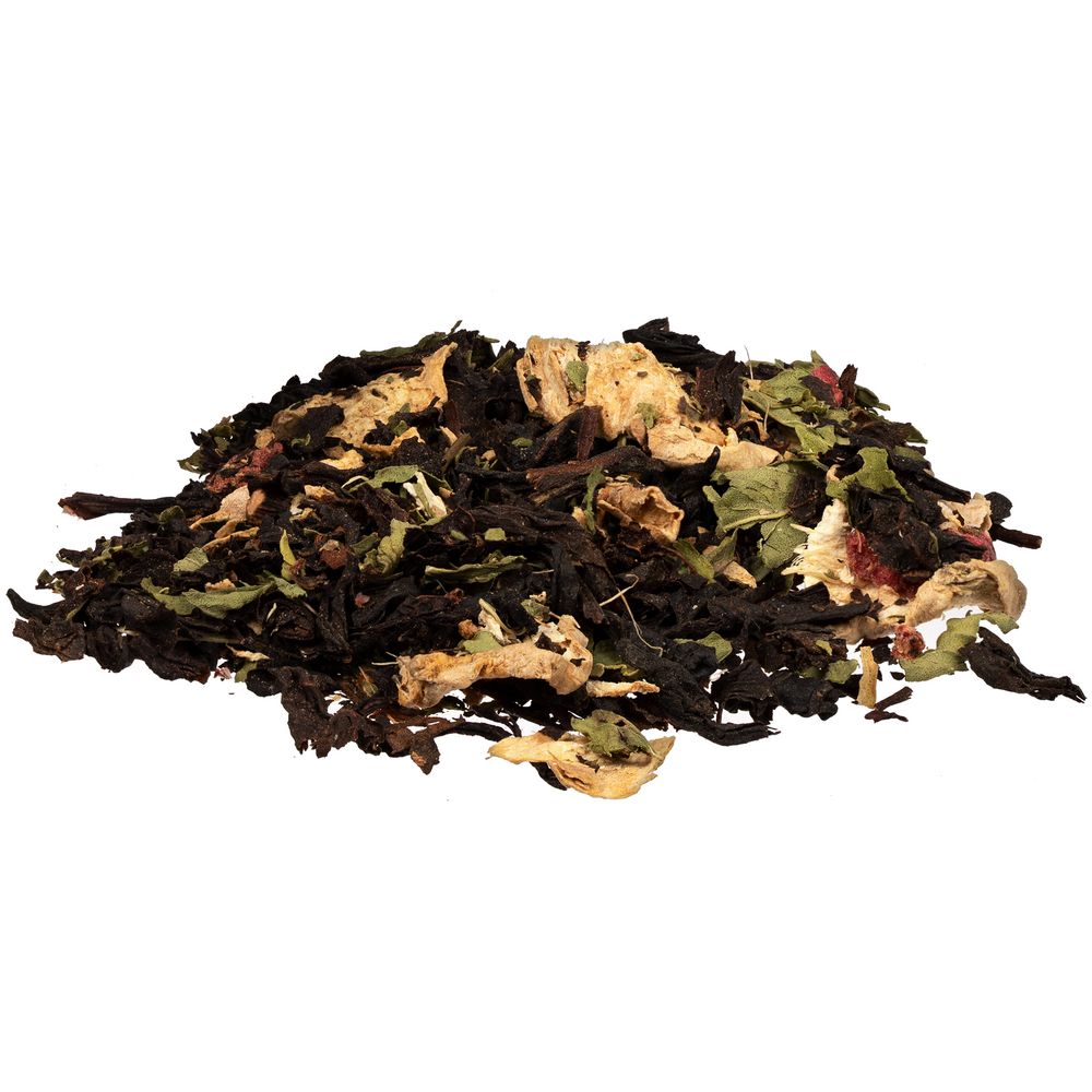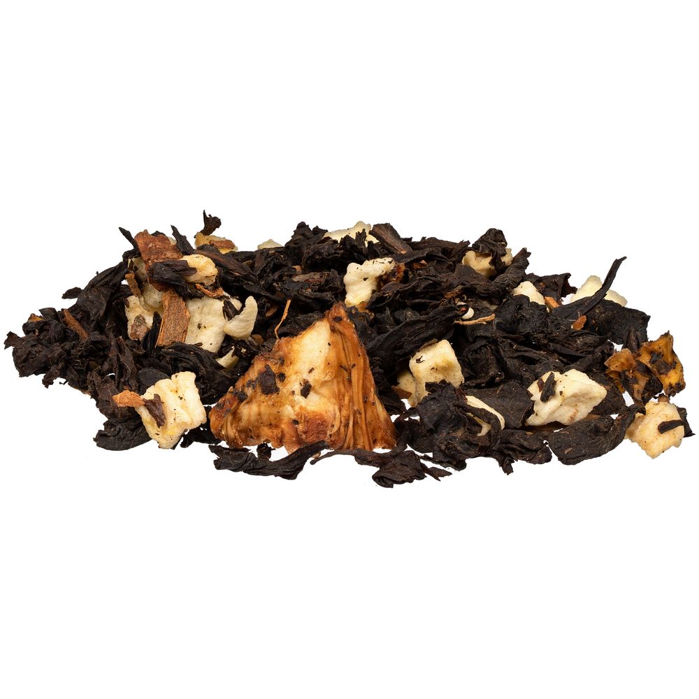 Черный крупнолистовой чай с кусочками ананаса, яблока и мятой обладает многогранной палитрой вкуса и аромата. В состав чая входят только натуральные ингредиенты, а чайные листья предварительно вымачиваются в соке ананаса: вкус напитка становится особо насыщенным и обогащенным.