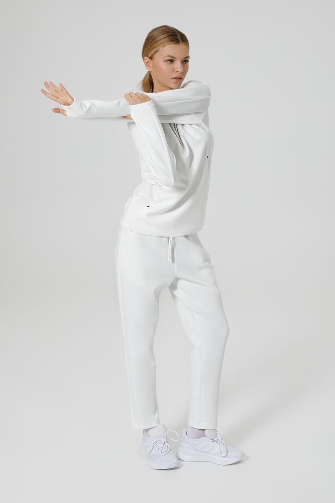 Коллекция текстиля Manevr Sport с продуманным анатомическим кроем выполнена из высокотехнологичного трехслойного материала, известного как ткань скуба или трикотажный неопрен, в самом центре которого спрятаны объемные нити текстурированного полиэстера.