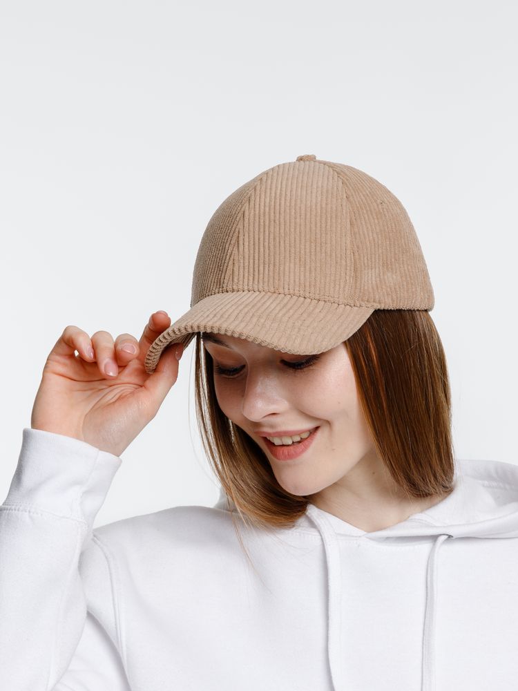Стильная бейсболка из вельвета с закругленным козырьком.