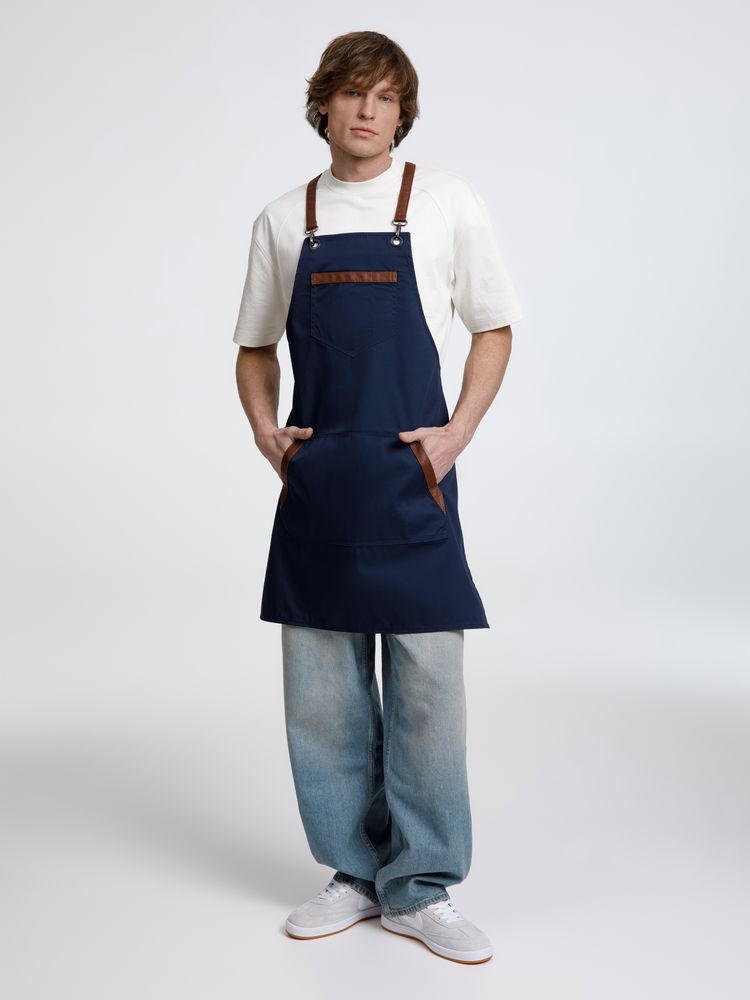 Функциональные карманы на груди и подоле эффектно украшают фартук, изготовленный из качественной дышащей плотной износостойкой ткани. Благодаря динамичным крестообразным лямкам он отлично сидит как на мужской, так и на женской фигуре. Кроме того, съемные лямки упрощают процесс стирки в стиральной машине.