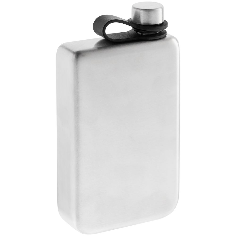 Завинчивающаяся крышка надежно крепится к горлышку ремешком, за который также удобно подвешивать и саму фляжку, например, на рюкзак.