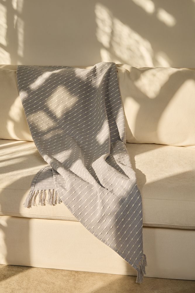 Фактурный узор с элементами счетной вышивки, а также спокойные природные оттенки пледа Shimla создадут приятное визуальное впечатление наряду с комфортными тактильными ощущениями благодаря натуральной основе пледа.