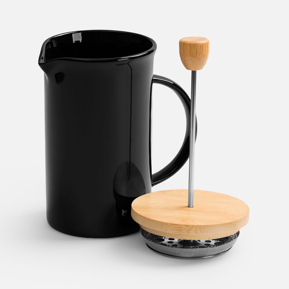 Элегантный керамический френч-пресс Mezzo в глянцевом черном исполнении — функциональный кухонный аксессуар и украшение любого пространства, от уютной домашней кухни до стильного офиса.Емкость 600 мл.