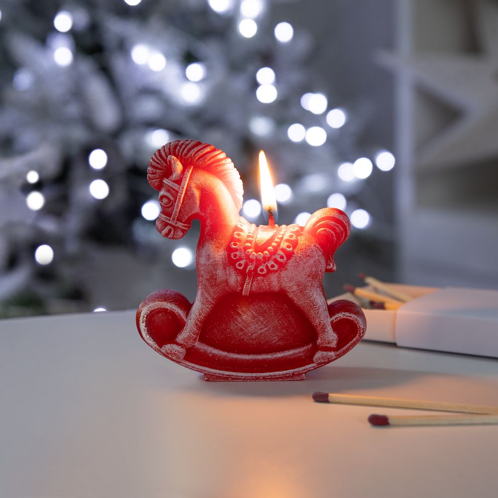Очаровательная свеча в виде милой игрушечной лошадки с легкостью перенесет в мир светлого волшебства и беззаботного детства. Она станет прекрасным дополнением к основному новогоднему подарку, добавив ему очарования и непринужденности. Ее мягкий свет создаст теплую атмосферу и наполнит пространство магией праздника. Яркие цвета и наивный ретростиль поднимут настроение и добавят радости в любой интерьер.