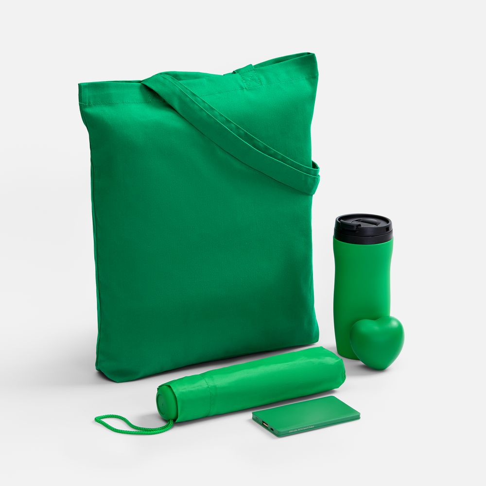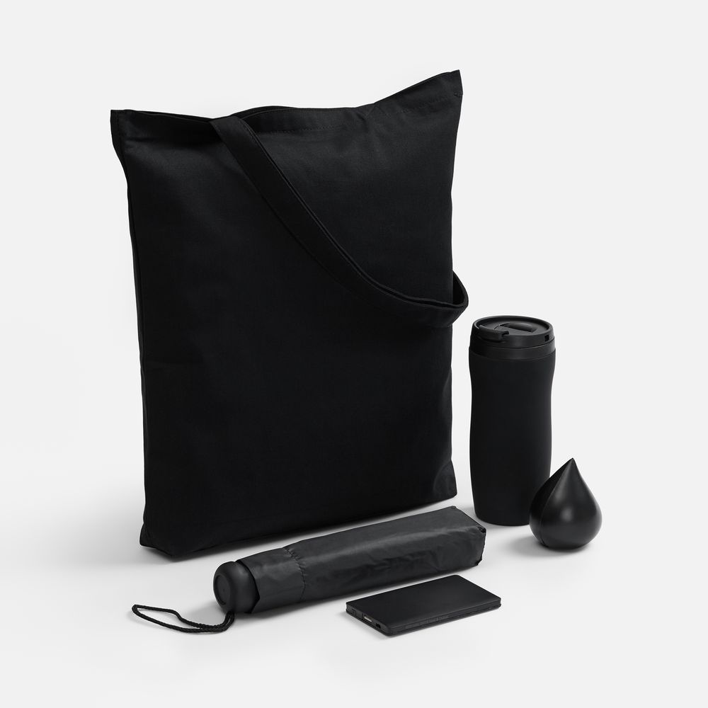 Материал товара: зонт - полиэстер 190T, ручка - пластик; покрытие софт-тач; каркас, спицы - металл; аккумулятор - пластик; крышка термостакана, внутренняя колба - пластик, корпус - нержавеющая сталь; покрытие софт-тач; сумка - хлопок 100%, плотность 210 г/м²; антистресс -