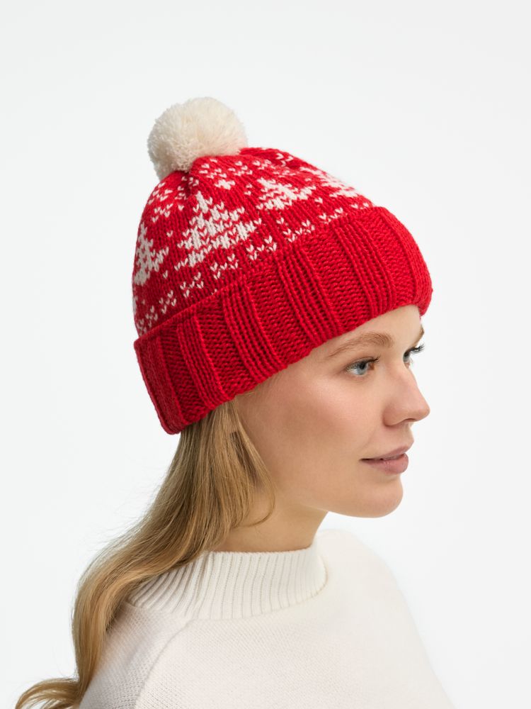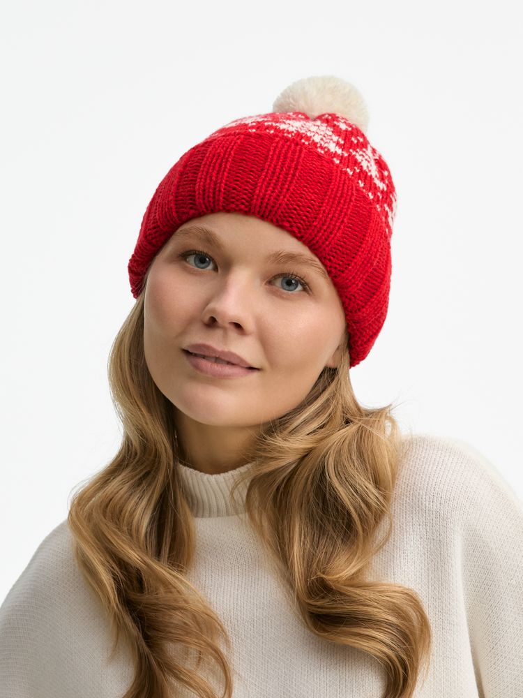 Шапка с отворотом, связанном резинкой, и контрастным пушистым помпоном — зимняя классика прямиком из детства. В ней захочется насладиться всеми радостями сезона: отправиться на каток, поиграть в снежки или с ветерком прокатиться на лыжах.