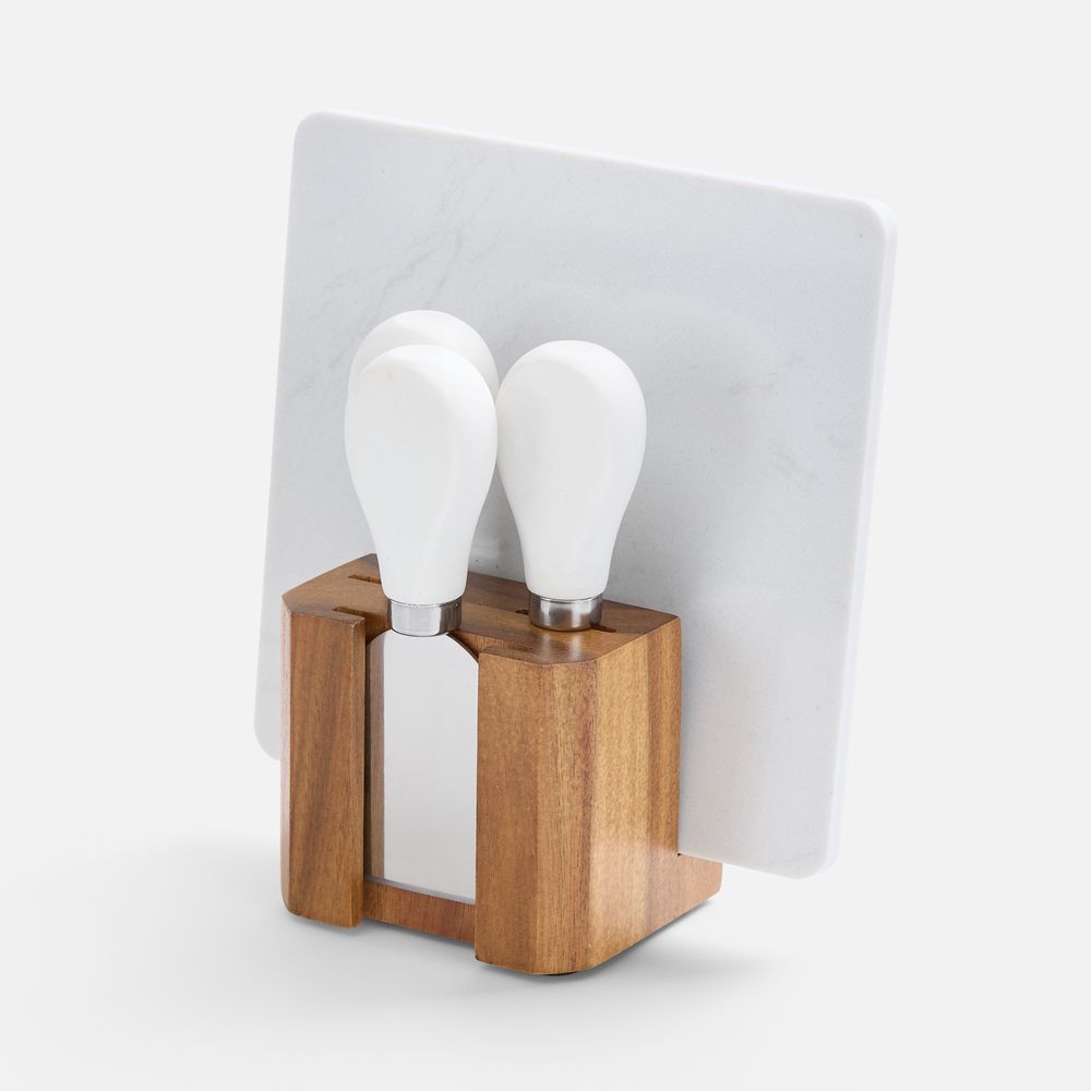 Marmara — компактный сырный набор с мраморной доской и ножами на деревянной подставке.