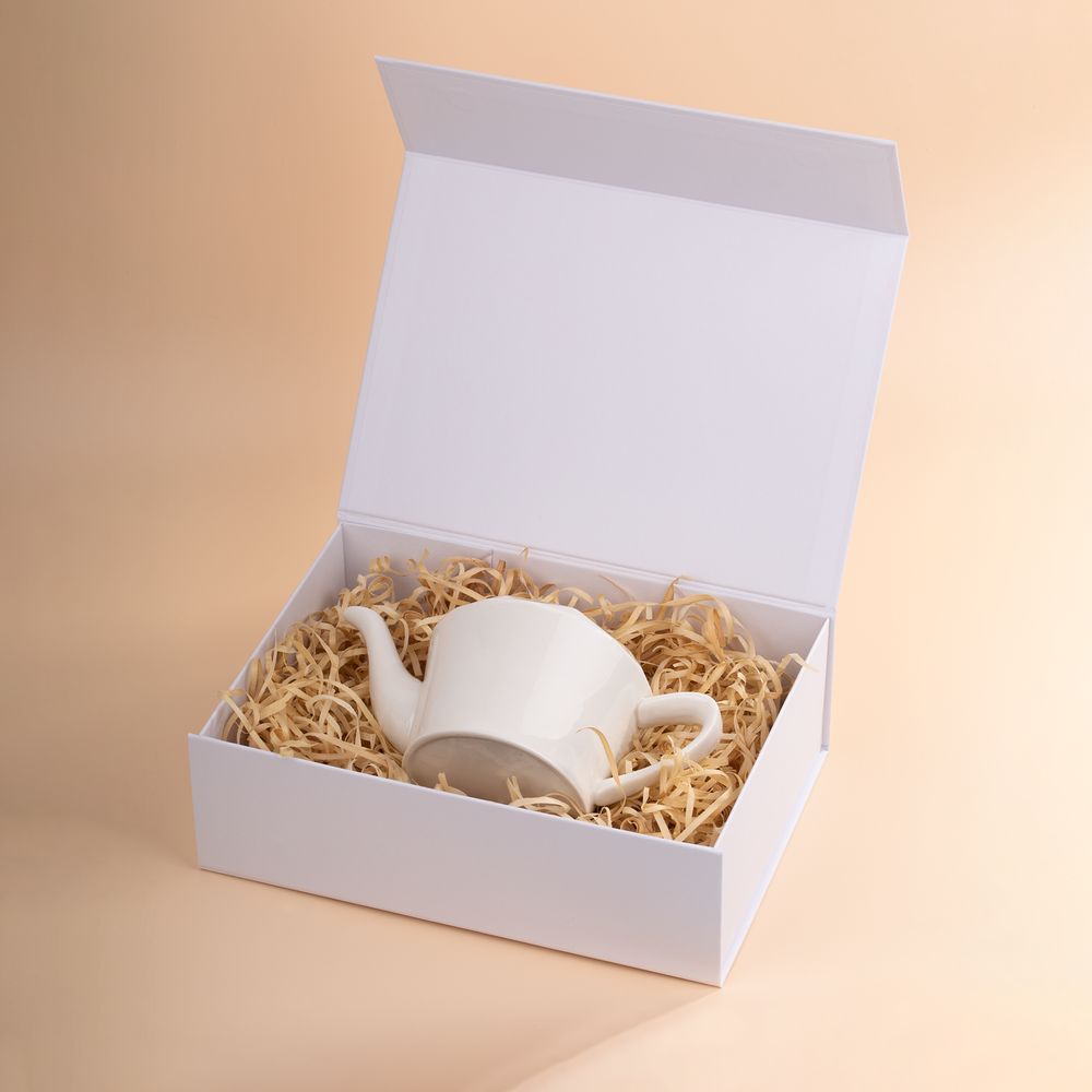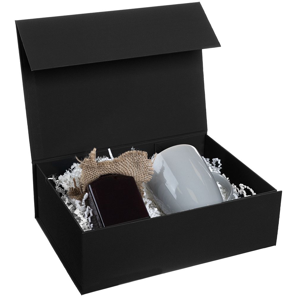Коробка из переплетного картона, кашированного тисненой тонированной в массе бумагой, с крышкой на магните.