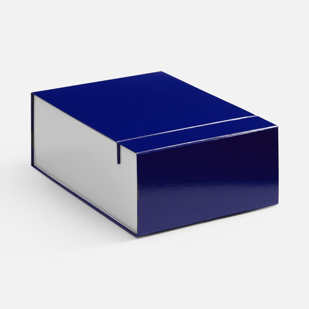 Плотная коробка из переплетного картона толщиной 2 мм с практичной конструкцией на двух створках. Складная система с уже нанесенным двусторонним скотчем позволяет быстро собрать коробку без дополнительных инструментов. Лайнер с полуглянцевым ламинированием устойчив к повреждениям и надолго сохраняет безупречный вид.