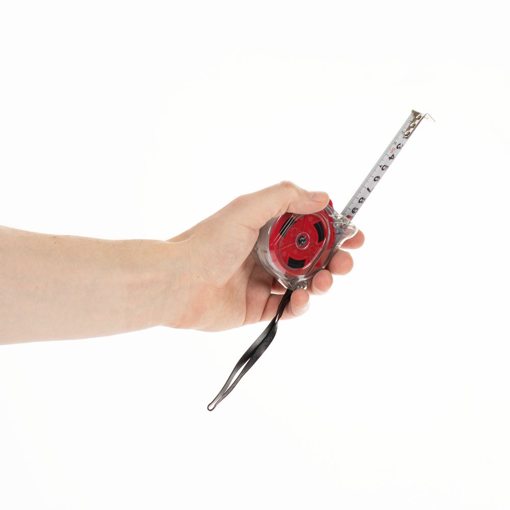 Рулетка Selvaksi — надежный помощник в строительстве, ремонте и быту для проведения измерений. Благодаря прозрачному корпусу видно всю измерительную ленту, что упрощает процесс работы. Корпус рулетки выполнен из прочного пластика, что делает ее легкой и удобной в использовании.