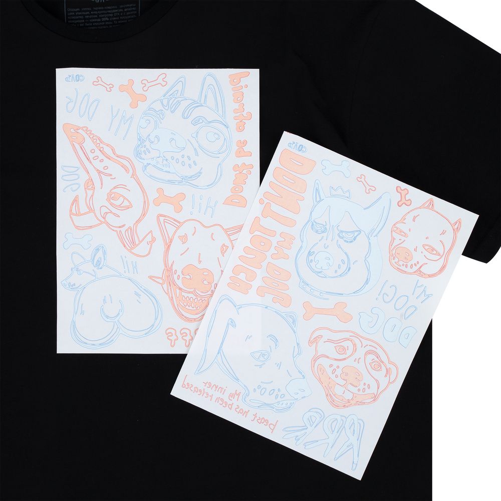Почему все хотят гладить чужую собачку, но никто не хочет гладить чужую футболку? Трансферный набор с портретами четвероногих друзей — заведите свою собаку на футболке и восстановите справедливость!В комплект входят два листа с термонаклейками и инструкция по использованию термонаклеек.