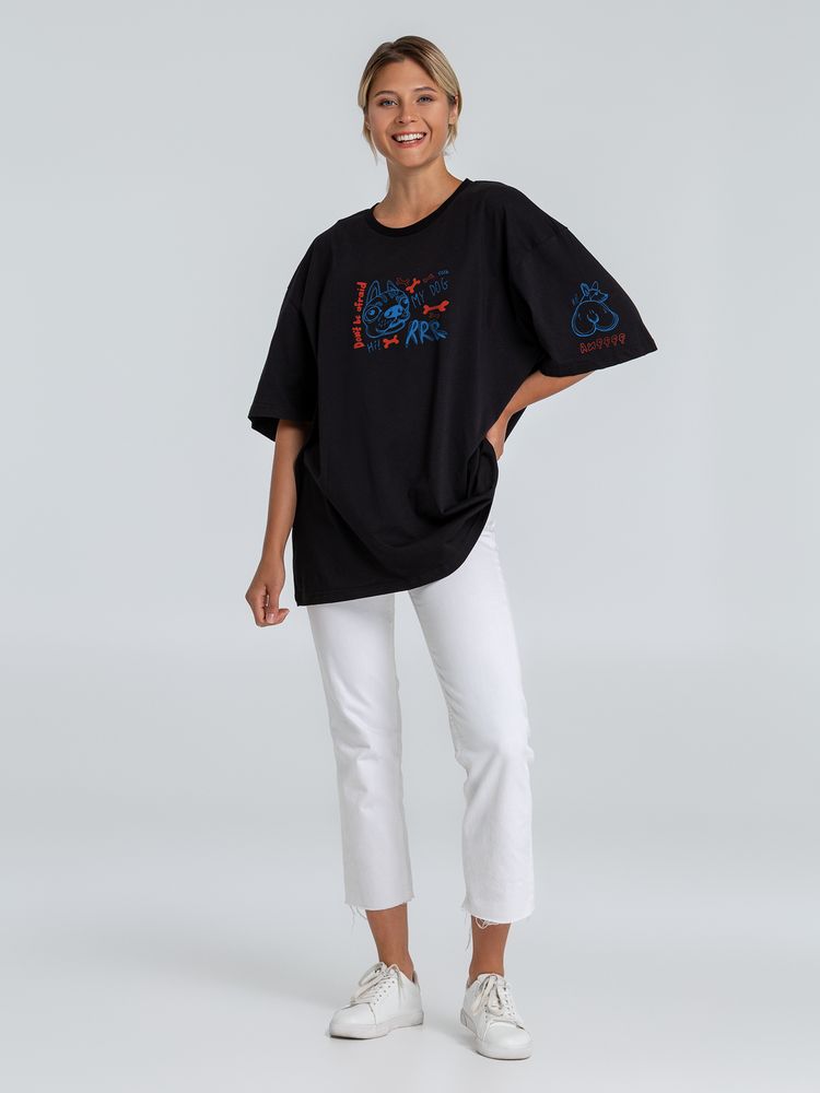 Футболка оверсайз с термонаклейками «Не трогай мою собаку!», черная