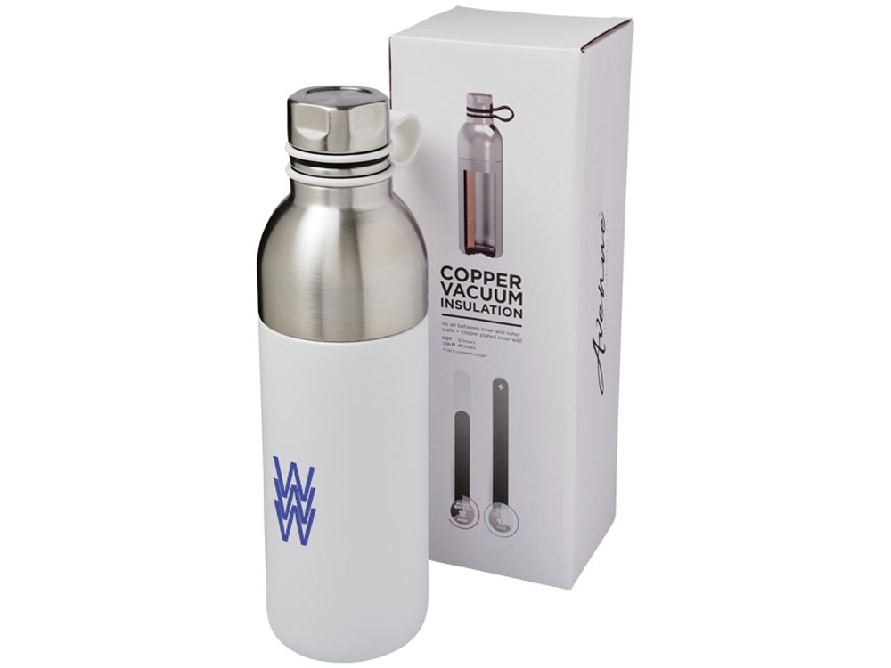 Медная спортивная бутылка с вакуумной изоляцией Koln объемом 590 мл. Двустенная вакуумная конструкция из нержавеющей стали с медной изоляцией позволит вашему напитку оставаться холодным в течение 48 часов и горячим — как минимум 12 часов. Кроме того, конструкция препятствует образованию конденсата на внешней стороне бутылки. Оснащена закручивающимся колпачком и крышкой из нержавеющей стали с удобной силиконовой петлей-держателем. Конструкция с двойным отверстием для легкой очистки и заполнения. Объем — 590 мл. Упакована в подарочной коробке Avenue. Нержавеющая сталь.