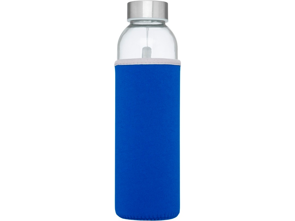 Стеклянная бутылка с одинарными стенками и съемной крышкой. На крышке есть ремешок для легкой переноски, кроме того имеется чехол из неопрена. Рекомендуется использовать для холодных напитков. Не замораживать, не разогревать в микроволновой печи. Объем 500 мл. Уложена в подарочную коробку. Трафаретная печать круговая (1 цвет (цветные изделия)) на данный товар осуществляется бесплатно. Оплачивается только настройка оборудования в размере 5700 рублей на весь тираж.