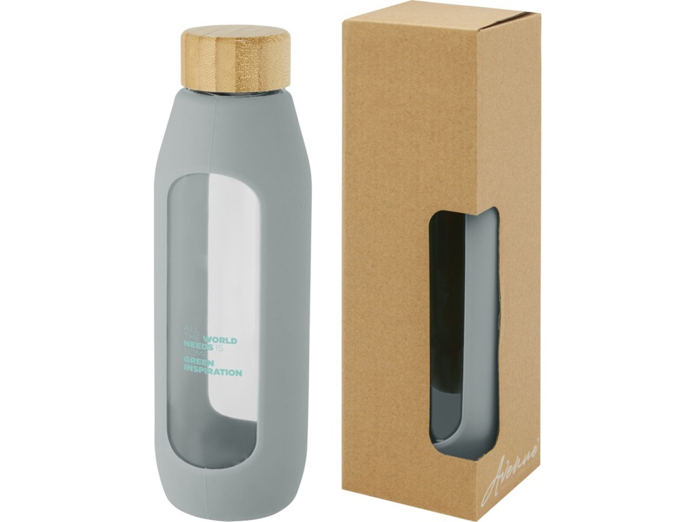 Экологичная многоразовая бутылка для воды, которая сохраняет воду чистой. Бутылка изготовлена из прочного боросиликатного стекла без содержания вредных химических веществ, благодаря чему сохраняется настоящий вкус чистой свежей воды. Имеет силиконовый держатель и герметичную крышку из органического бамбука. Протестировано и одобрено согласно немецкому законодательству о безопасности пищевых продуктов (LFGB), а также проверено на содержание фталатов согласно нормам REACH. Объем 600 мл. Сняв держатель и крышку, бутылку можно мыть в посудомоечной машине. В подарочной коробке из переработанного картона.