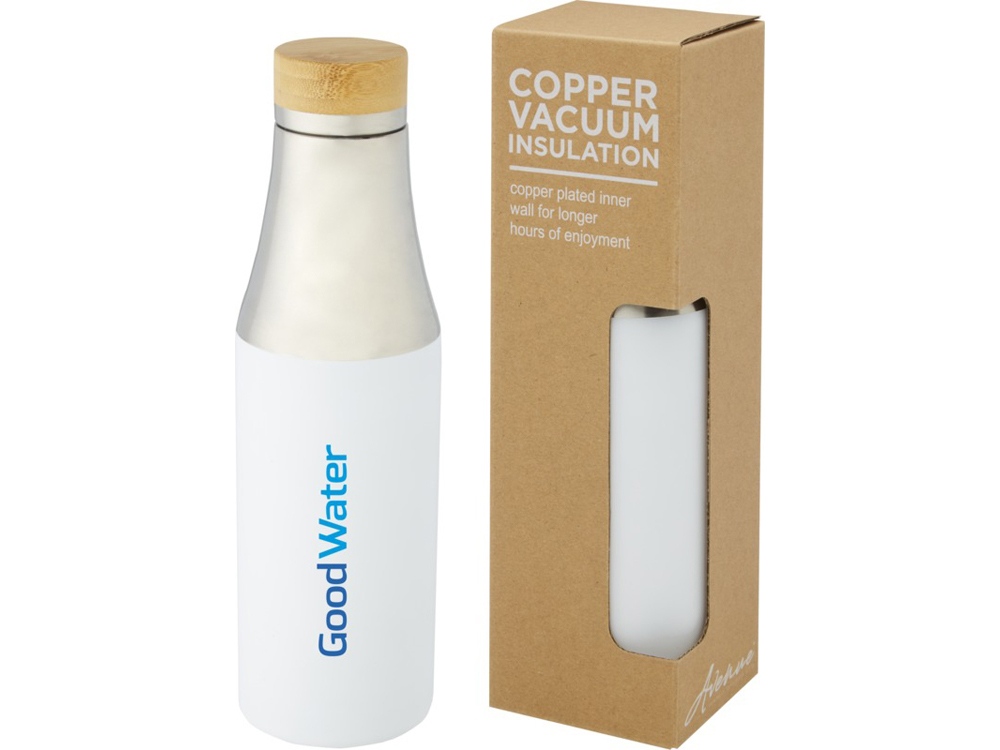 Простота и элегантность делают эту бутылку идеальным подарком. Бутылка имеет крышку из нержавеющей стали с элементом из органического бамбука на верхней части. Благодаря двустенной конструкции, медной вакуумной изоляции и нержавеющей стали 18/8 напитки долго остаются горячими или холодными. Протестировано и одобрено согласно немецкому законодательству о безопасности пищевых продуктов (LFGB), а также проверено на содержание фталатов согласно нормам REACH. Объем 540 мл. В коробке из переработанного картона. Нержавеющая сталь, бамбук.
