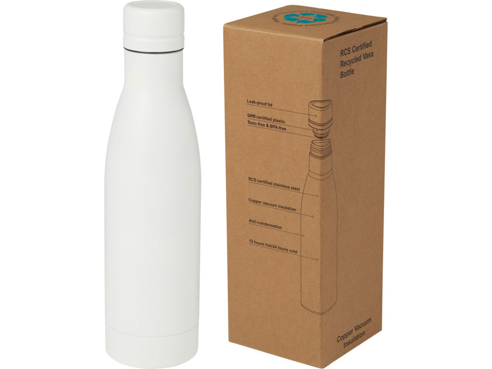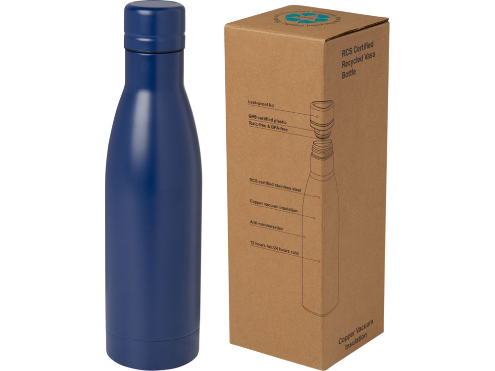 Ваши напитки останутся горячими в течение 12 часов и холодными в течение 24 часов в медной бутылке Vasa с вакуумной изоляцией. Бутылка с двойной стенкой и сделана из переработанной нержавеющей стали, сертифицированной по стандарту RCS, с вакуумной изоляцией и медным покрытием на внутренней стенке, что позволит вашему напитку оставаться абсолютно горячим или холодным словно лед, в зависимости от того, что вам нужно. Без содержания BPA, протестировано и одобрено согласно немецкому законодательству о безопасности пищевых продуктов (LFGB) и проверено на содержание фталатов согласно нормам REACH. Объем: 500 мл. Поставляется в подарочной коробке из экологичного и ответственного материала. 87% Recycled stainless steel, 13% Пластик PP. #?0:>2:0: FSC Mix Credit P5.1 CU-COC-877277.