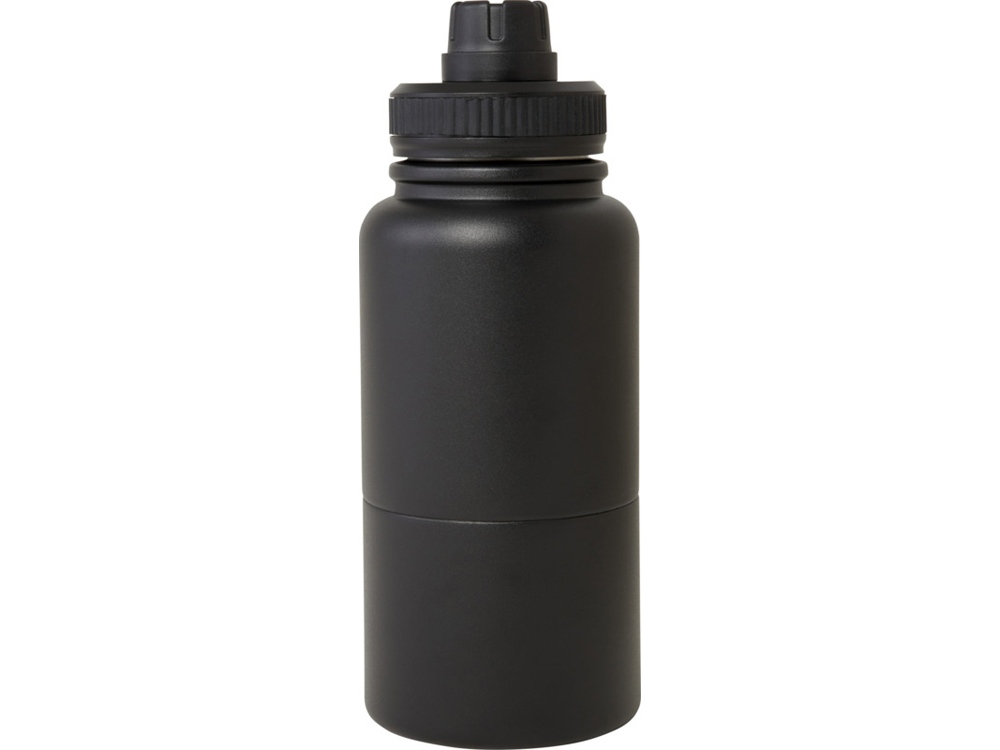 Многоразовая бутылка-термос из нержавеющей стали, сертифицированная RCS, со съемным контейнером для хранения. В верхней части бутылка имеет медный изолированный термос объемом 530 мл, который сохраняет напитки горячими или холодными в течение нескольких часов. Нижняя часть представляет собой контейнер с двойными стенками, вмещающий до 340 мл. Его можно использовать как чашку для любимых холодных напитков или для хранения закусок или других мелочей. Поставляется в подарочной коробке из переработанного картона. RCS certified recycled stainless steel, Recycled PP Plastic. Packaging: FSC Mix Credit P5.1 CU-COC-877277.