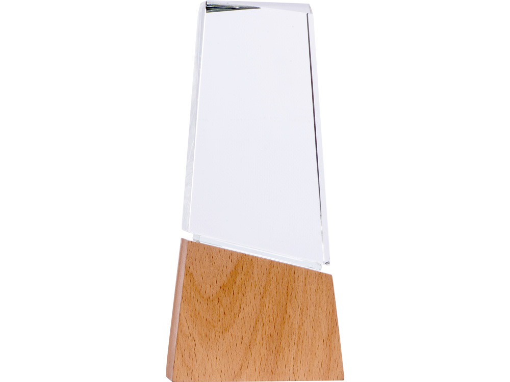 Награда выполнена из стекла, имеет необычную форму и расположена на деревянном постаменте. Лаконична и минималистична.