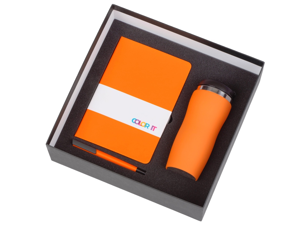 Подарочный набор c блокнотом C1, ручкой и термокружкой, оранжевый