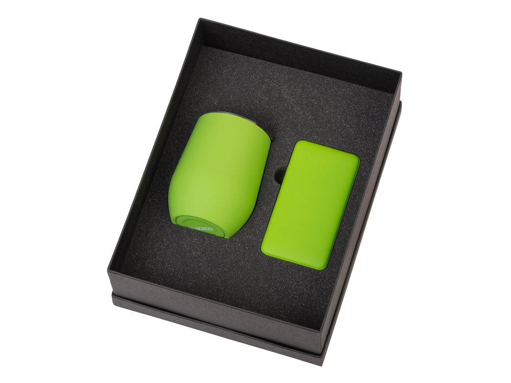 Подарочный набор с термокружкой и повербанком С1, 5000 mAh, зеленое яблоко