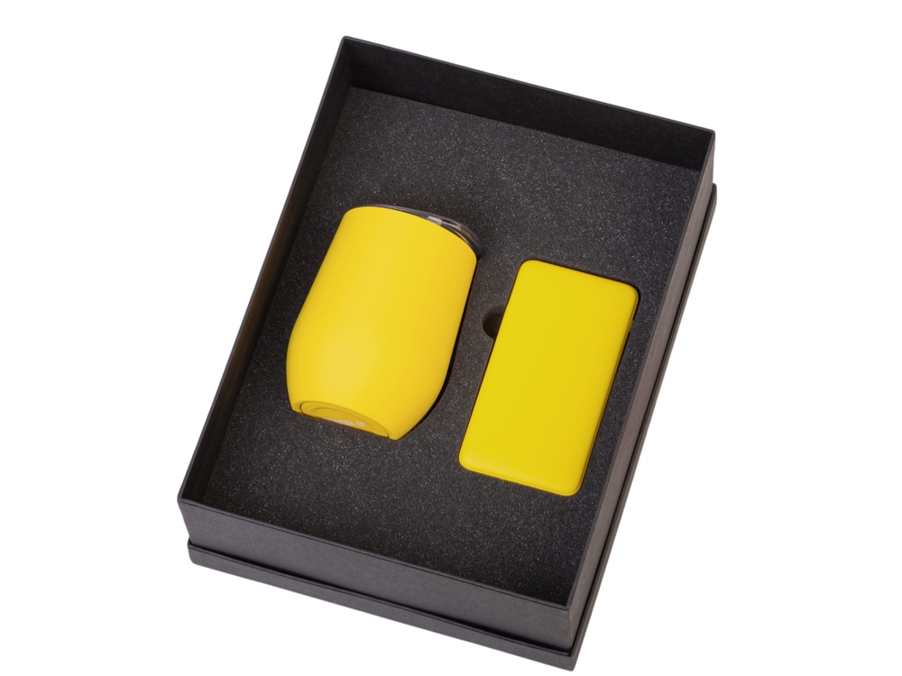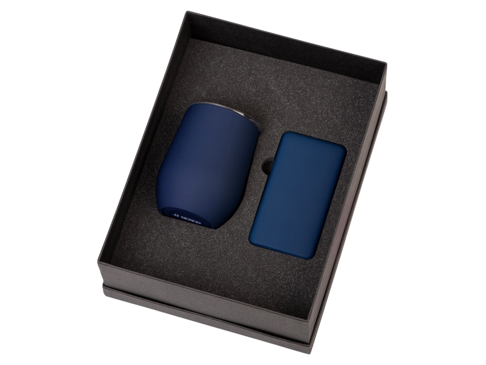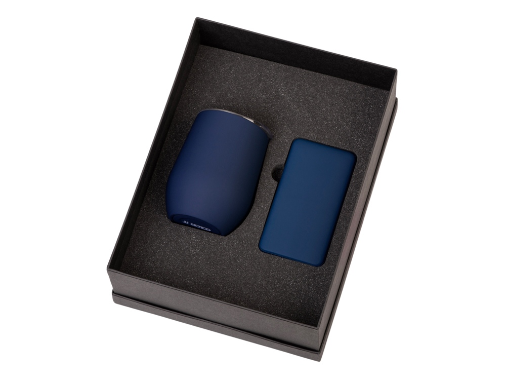Материал товара: повербанк- пластик с покрытием soft-touch, термокружка- нержавеющая cталь с покрытием soft-touch