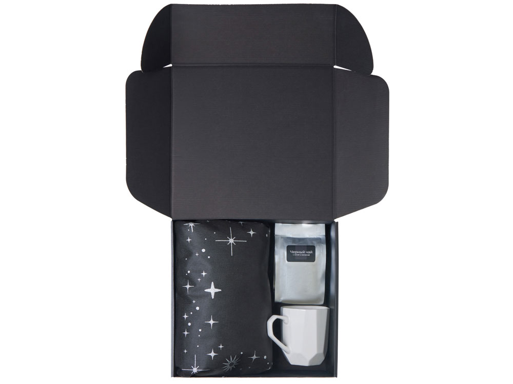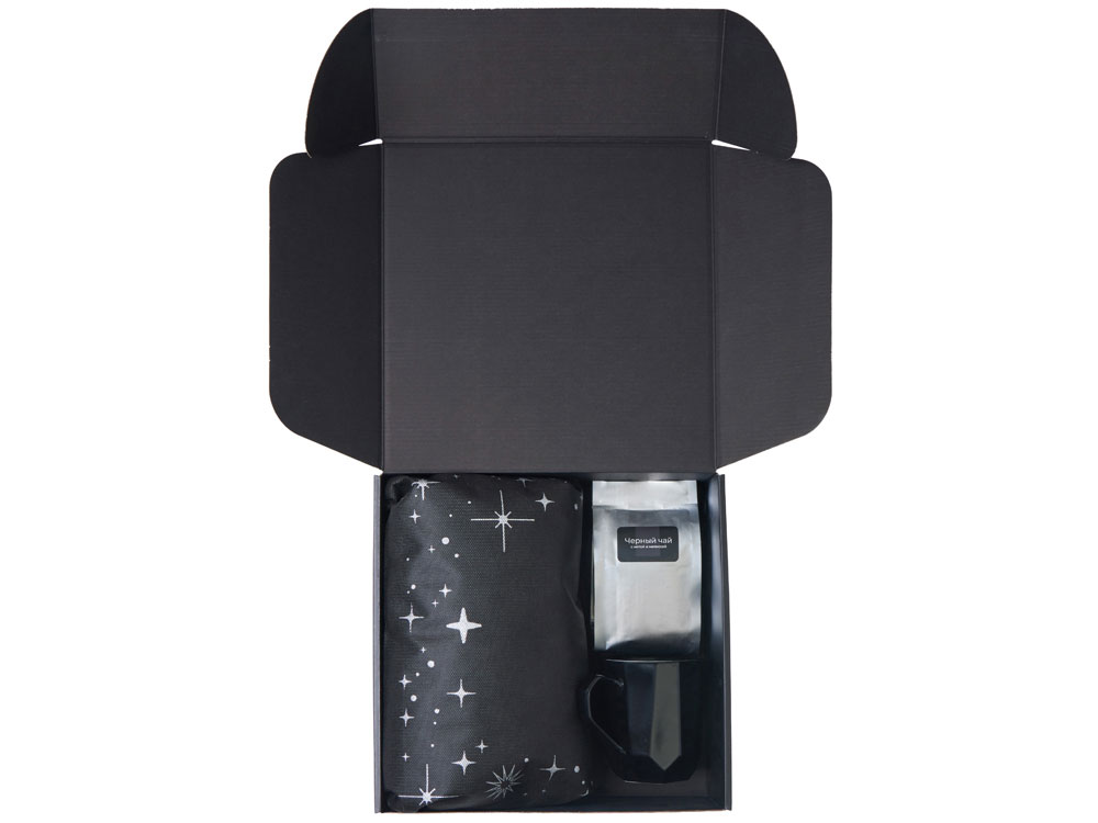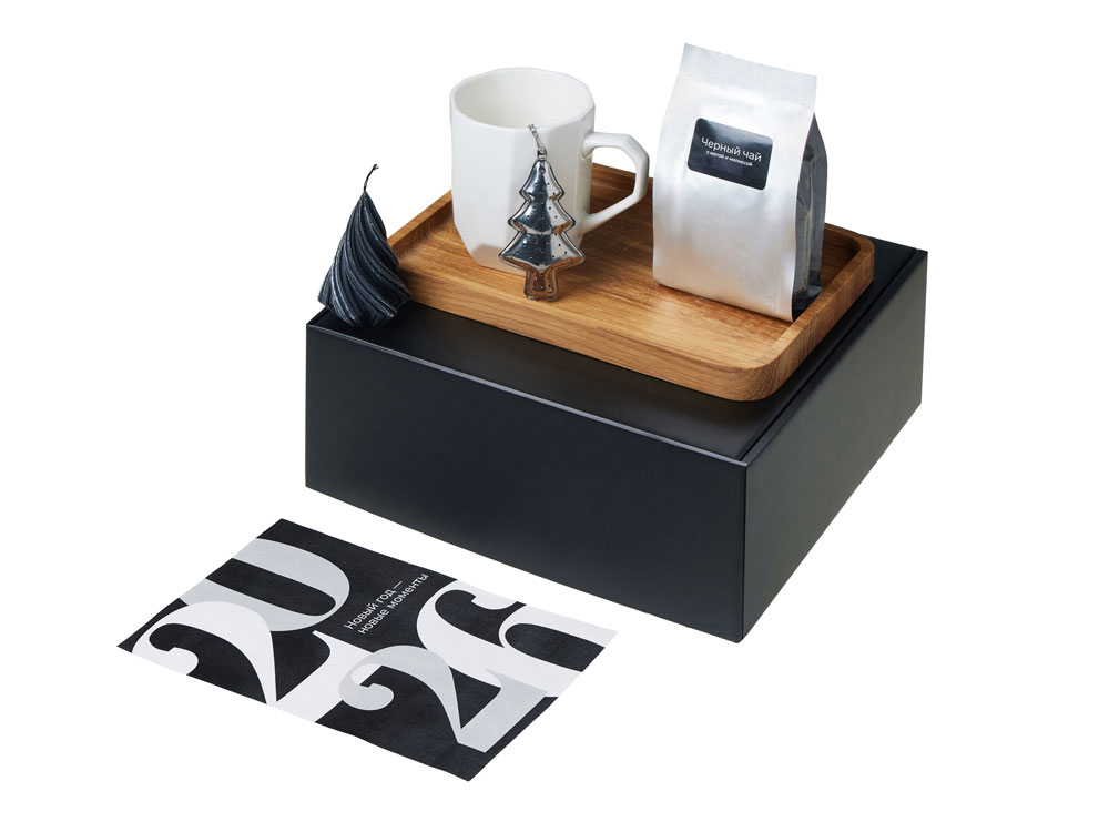 Подарочный набор с кружкой, подносом, свечой и чаем, черный