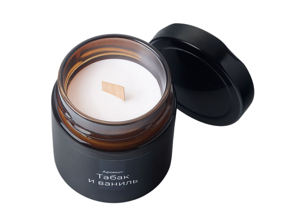 Свеча в стеклянной коричневой банке 200мл, аромат Табак и ваниль, фитиль деревянный