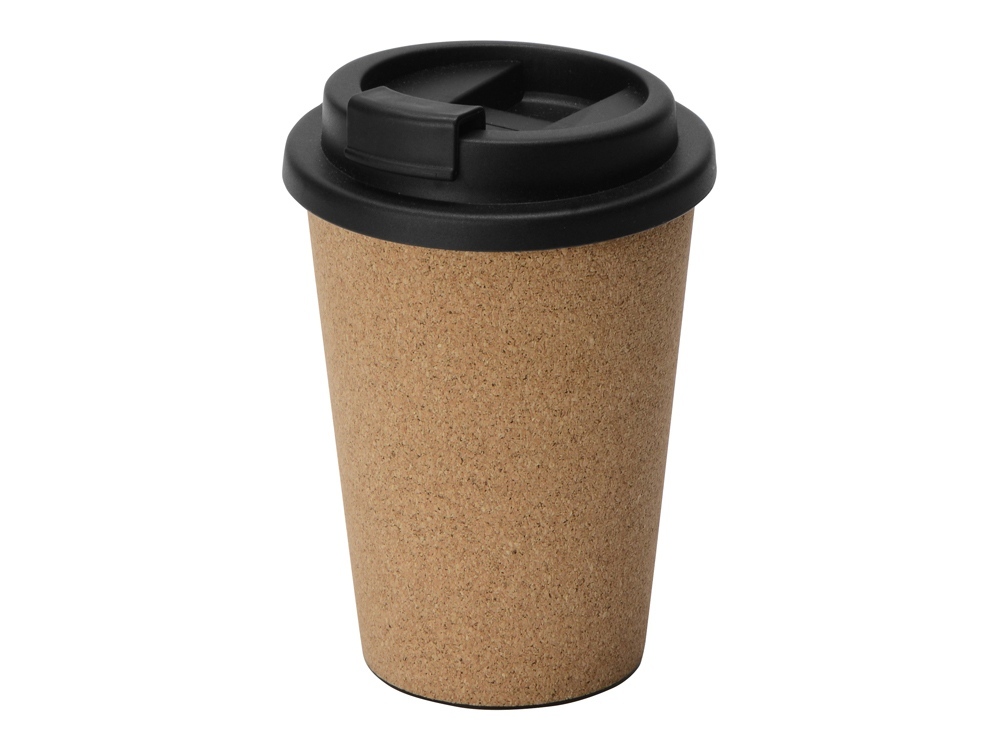 Многоразовый стакан с двойными стенками выполнен из древесины пробкового дерева, также как и корпус шариковой ручки с нажимным механизмом.