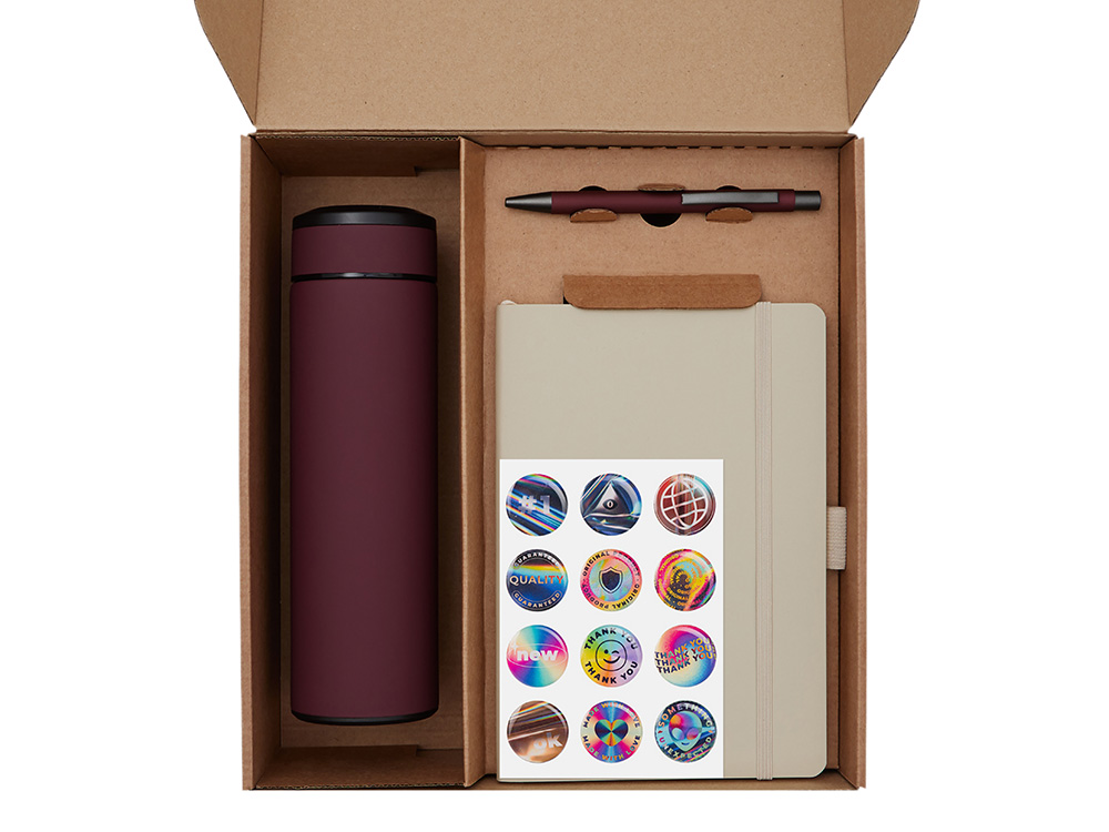 Подарочный набор с термосом, блокнотом, ручкой и чаем, бордовый