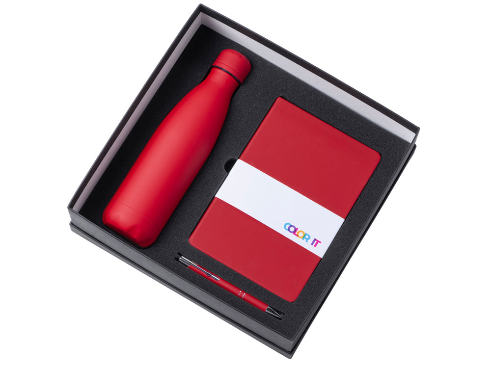 Подарочный набор с блокнотом С1, металлической ручкой и термобутылкой, красный
