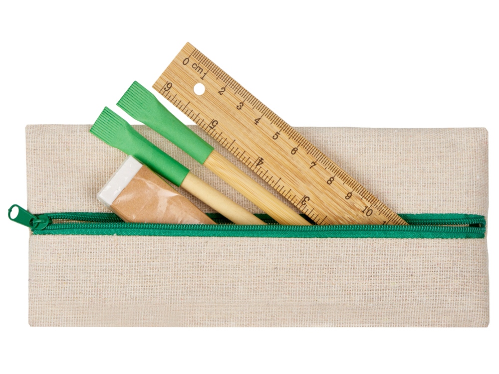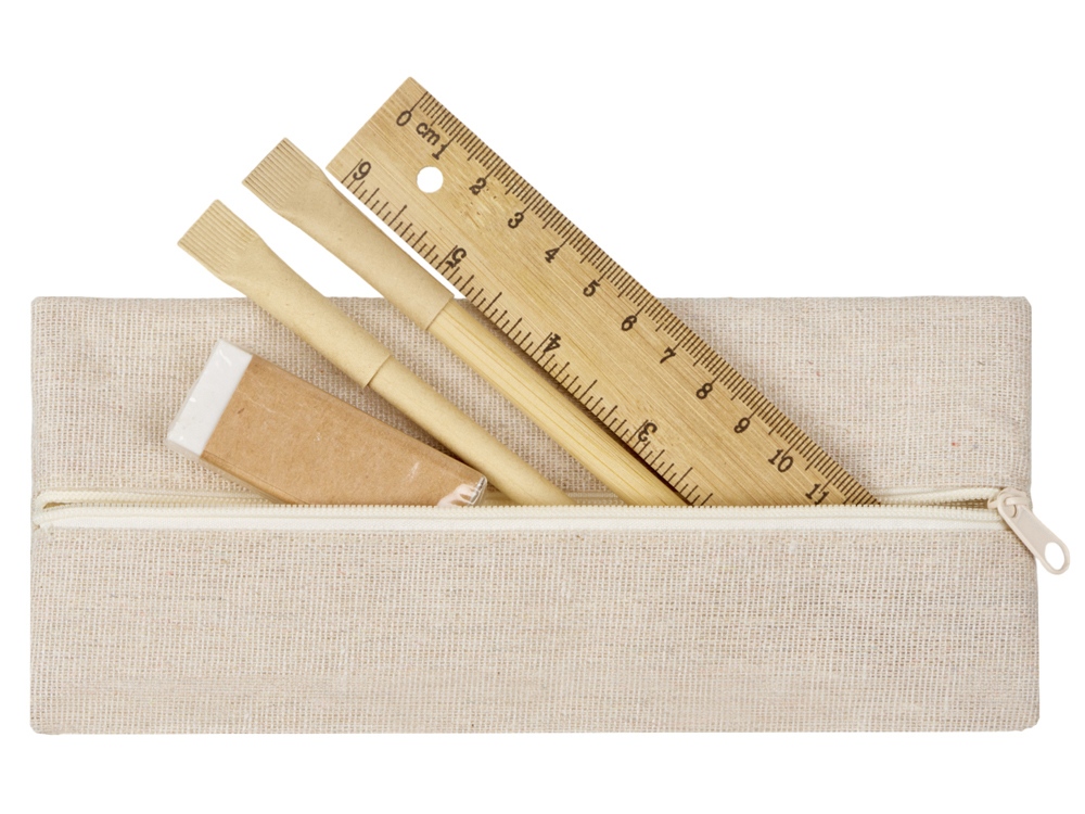 Удобный набор канцелярии со всем необходимым. В наборе: пенал на молнии, ручка Recycled, вечный карандаш в бамбуковом корпусе с колпачком из переработанной бумаги, ластик и бамбуковая линейка. Чтобы все самые необходимые пишущие принадлежности были под рукой. Термотрансфер (1 цвет (цветные изделия)) на данный товар осуществляется бесплатно. Оплачивается только настройка оборудования в размере 10000 рублей на весь тираж.