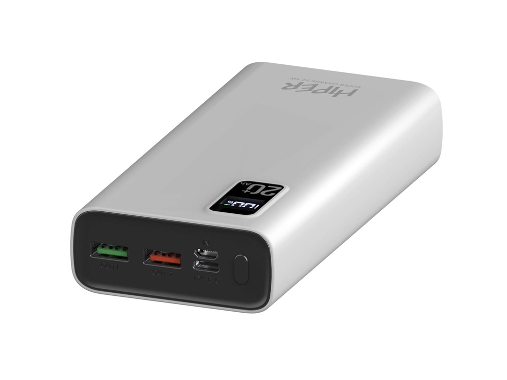 Портативный внешний аккумулятор HIPER FAST 20000 емкостью 20000 мАч (74Втч) оснащён двунаправленным портом USB-C, Micro-USB входом для зарядки, с поддержкой быстрой зарядки аккумулятора QC и PD, 2xUSB-A выходами, максимальный выходной ток 5А, максимальная мощность 22,5 Вт, поддержка быстрой зарядки стандарта QC 18 Вт, поддержка быстрой зарядки стандарта PD 18 Вт, стильный дизайн.