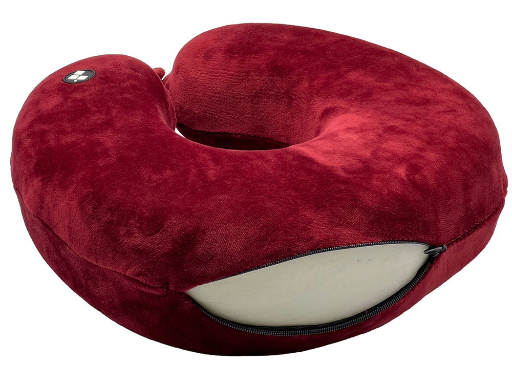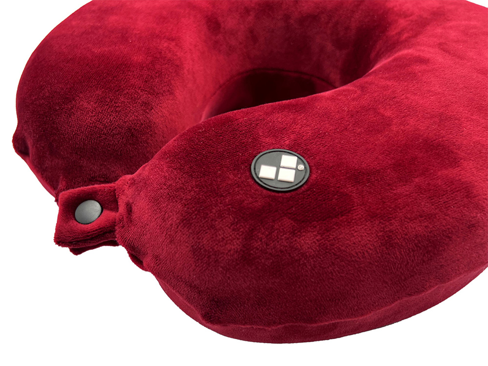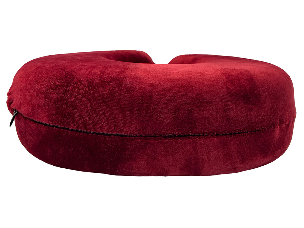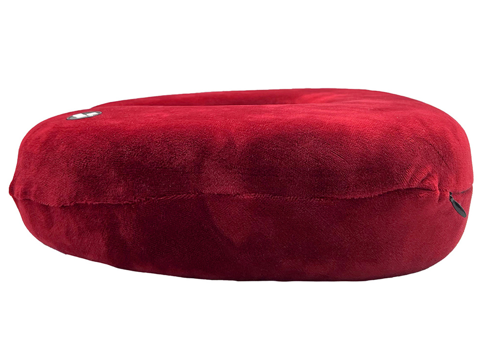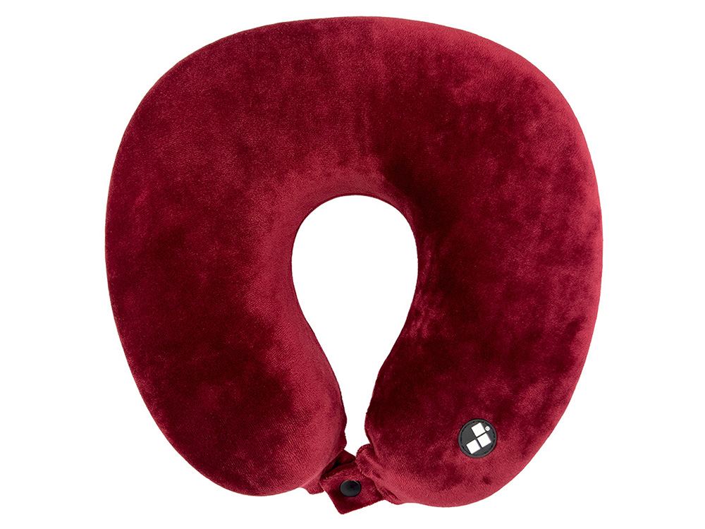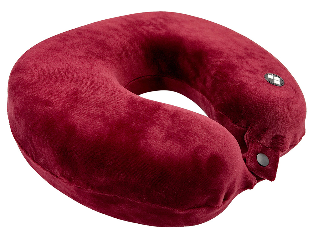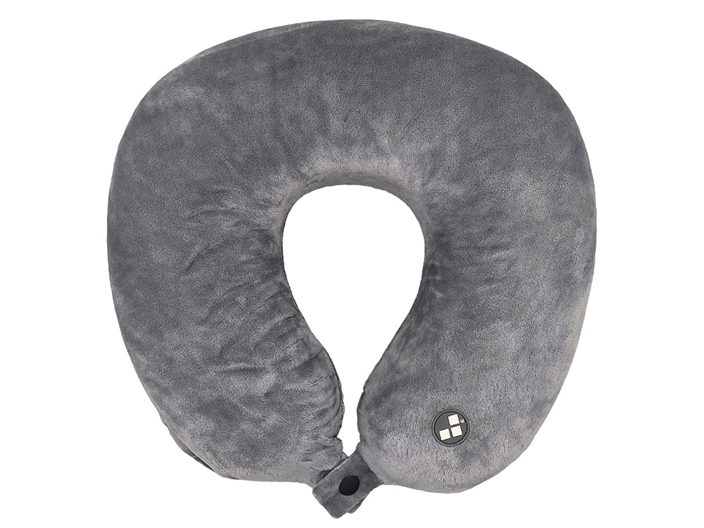 Удобная кнопочная застёжка надёжно фиксирует подушку на шее, а в комплект входит прочный круглый чехол на молнии — для компактного хранения и перевозки.