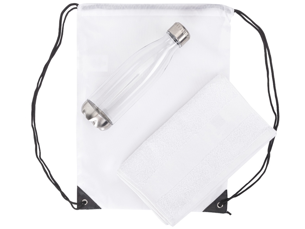 Универсальный спортивный набор будет актуален в любом виде спорта. Бутылка для воды позволит брать с собой не только воду, но и тонизирующие напитки или коктейли и поможет освежиться в любой момент. Тритан, из которого изготовлена бутылка, не искажает вкус и запах напитков, являясь абсолютно безопасным для человека.