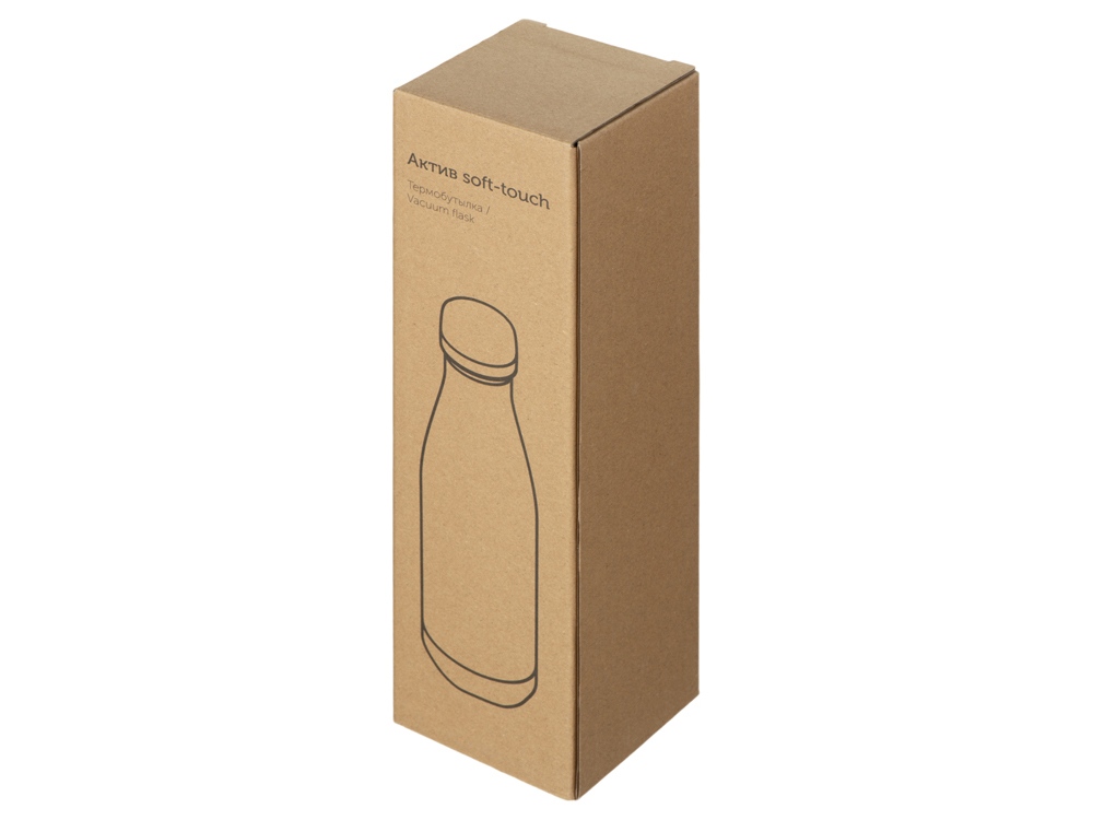 Термобутылка Актив в мягком антискользящем покрытии soft-touch. Корпус имеет узнаваемую классическую форму. Продуманная конструкция с вакуумной изоляцией и двойными стенками из пищевой нержавеющей стали сохраняет напитки горячими или холодными в течение 24-х часов! Термобутылку удобно носить с собой и пользоваться практически везде. Объем 500мл.
