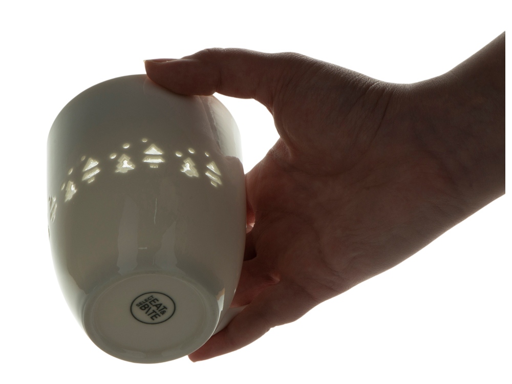 Twinkling Trees станет необычным и запоминающимся новогодним мерчем, благодаря узору на кружке, - елочки и снежинки за счет прозрачности приобретут цвет напитка.
