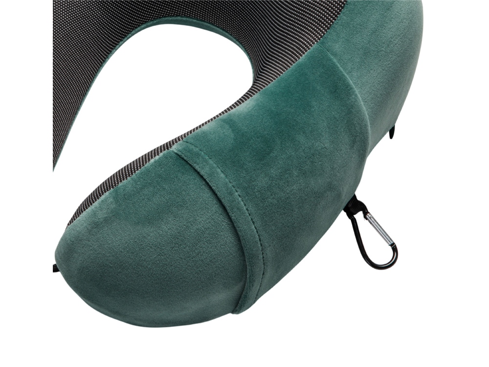 Комфортная подушка для путешествий с эффектом памяти имеет анатомически удобную для шеи форму, которая позволяет разместиться с комфортом во время путешествия. Подушка имеет кармашек, в который можно положить небольшие мелочи, которые сделают путешествие еще удобнее: платок, маску, беруши, наушники, словом, то, что вам может понадобиться во время перелета. Мягкий приятный тактильно материал позволяет расслабиться в объятиях этой подушки, а чехол для переноски и карабин для крепления делают хранение и использование еще удобнее. Застежка на шее позволяет регулировать положение, чехол можно снять и постирать на режиме, который указан на ярлычке. Дышащий материал на внутренней части чехла подушки делает ее идеальным компаньоном для поездок даже в жарком климате.
