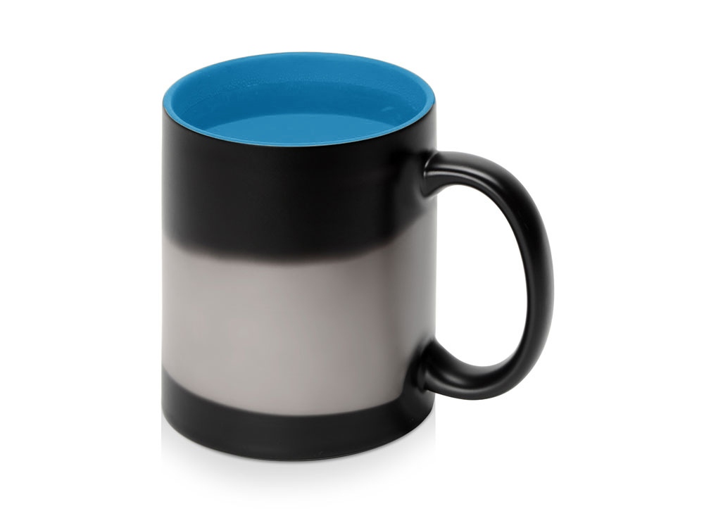 Кружка-хамелеон меняет свой облик, едва вы нальете в нее горячий напиток: черная поверхность постепенно изменяет свой цвет, становясь белой. Внутренняя часть кружки — яркая, цветная, что можно красиво обыграть, удачно сочетая ее с цветом вашего лого или гаммой изображения.