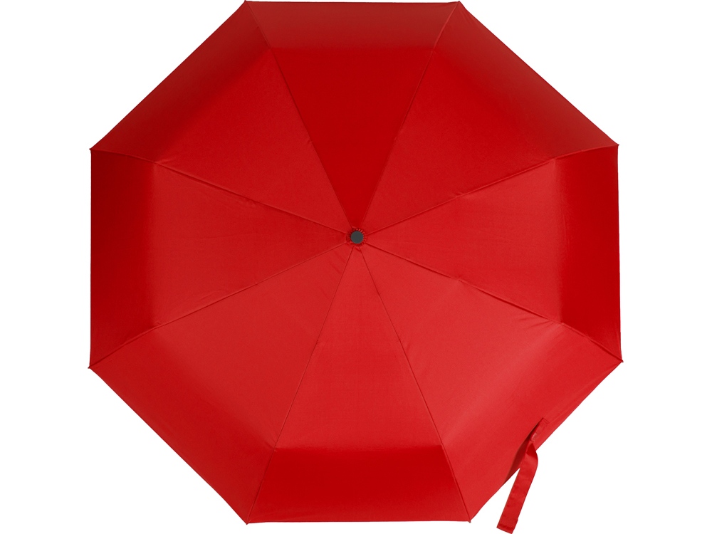 Купол зонта выполнен из переработанного пластика. Гибкие спицы из стекловолокна делают зонт стойким к порывам ветра. Удобная ручка софт тач. Фиксирующая купол застежка на липучке шириной 3 см - дополнительная опция для нанесения вашего логотипа.