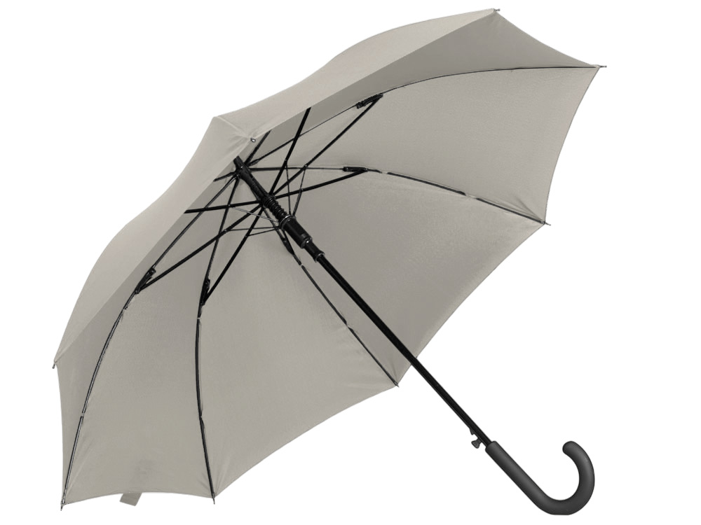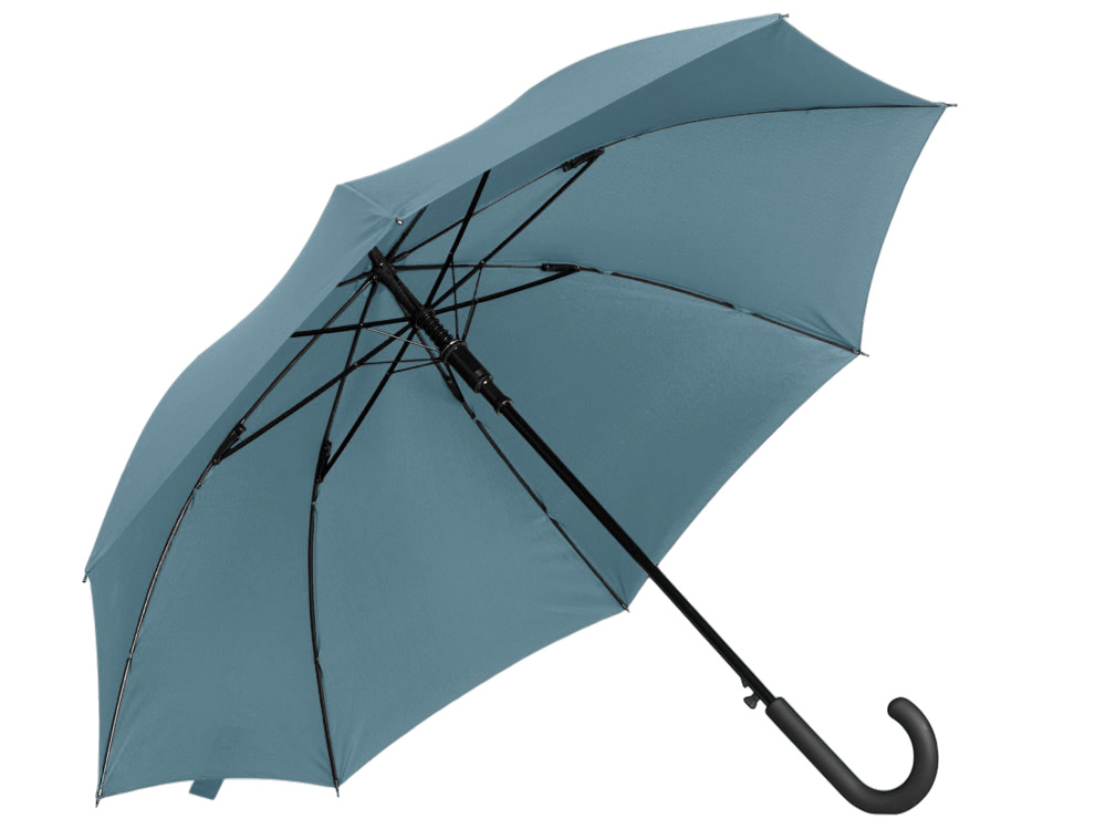 Купол зонта-трости выполнен из переработанного пластика. На ручке зонта расположена кнопка автоматического открытия. Гибкие спицы из стекловолокна делают зонт стойким к порывам ветра. Удобная ручка софт тач. Фиксирующая купол застежка на липучке шириной 3 см - дополнительная опция для нанесения вашего логотипа.