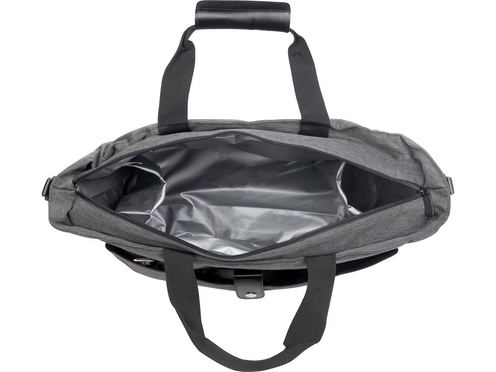 Большую вместительную сумку-холодильник удобно использоваться для транспортировки охлаждённых или подогретых продуктов и бутылок с разнообразными напитками. Внутри по бокам сумки расположены 2 изотермических кармана для высоких бутылок. Основное отделение на молнии. 2 ручки с фиксатором на липучке для удобства носить в руке. Большой наружный карман на кнопке. Съемная лямка на плечо регулируется по длине. Выгодный бонус - штопор с бамбуковой ручкой в комплекте.