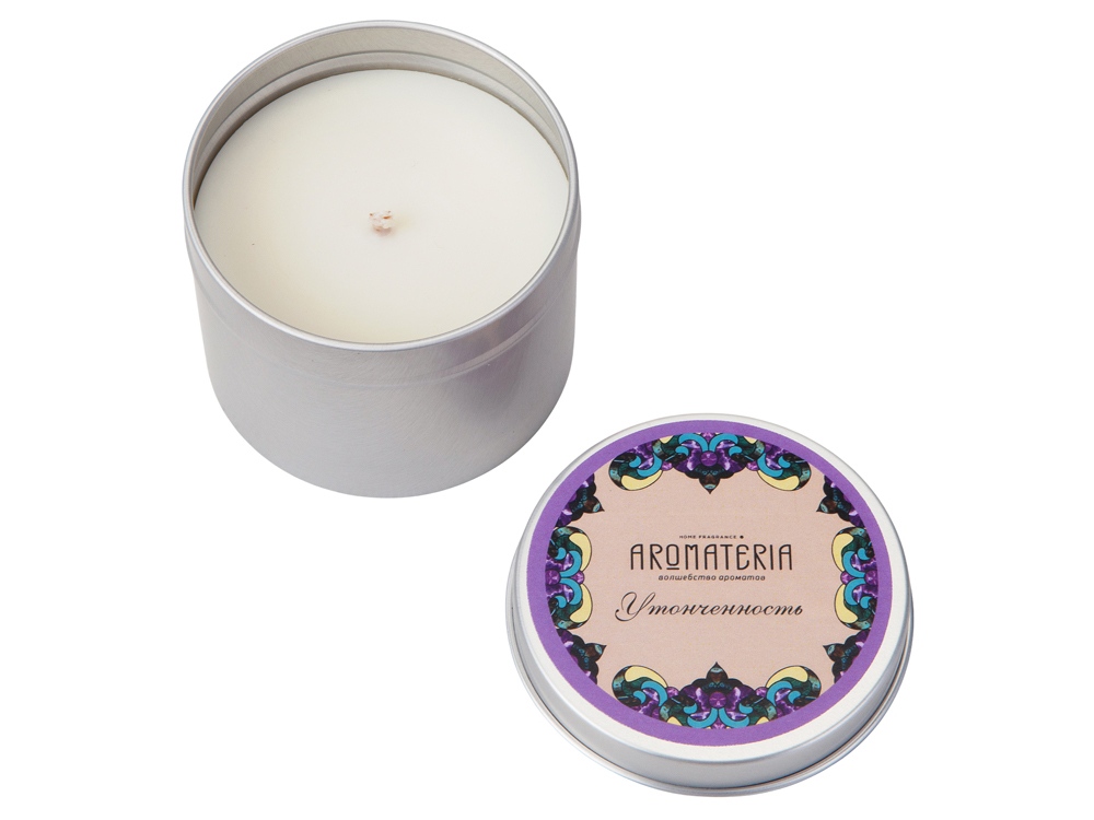 Ароматическая свеча Утонченность – это бодрящие ноты цитрусовых, фиалки и орхидеи, раскрывающиеся базовыми аккордами сандала и ванили.