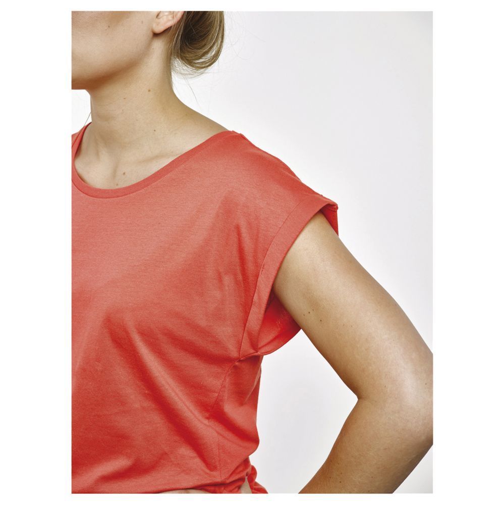 Кроеная футболка с круглым воротом и бесшовной проймой.