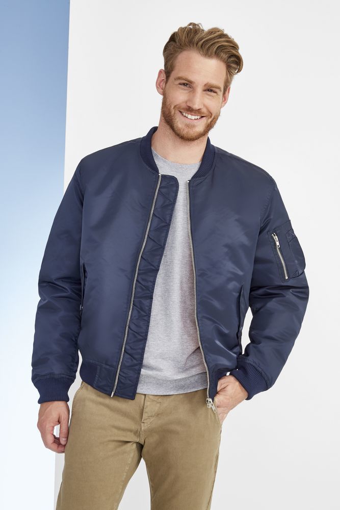 Куртка "Пилот" на молнии с контрастной оранжевой подкладкой. Ворот, манжеты и низ в резинку, 2 кармана с клапаном на кнопках, 1 карман на молнии на рукаве. Водоотталкивающая пропитка.