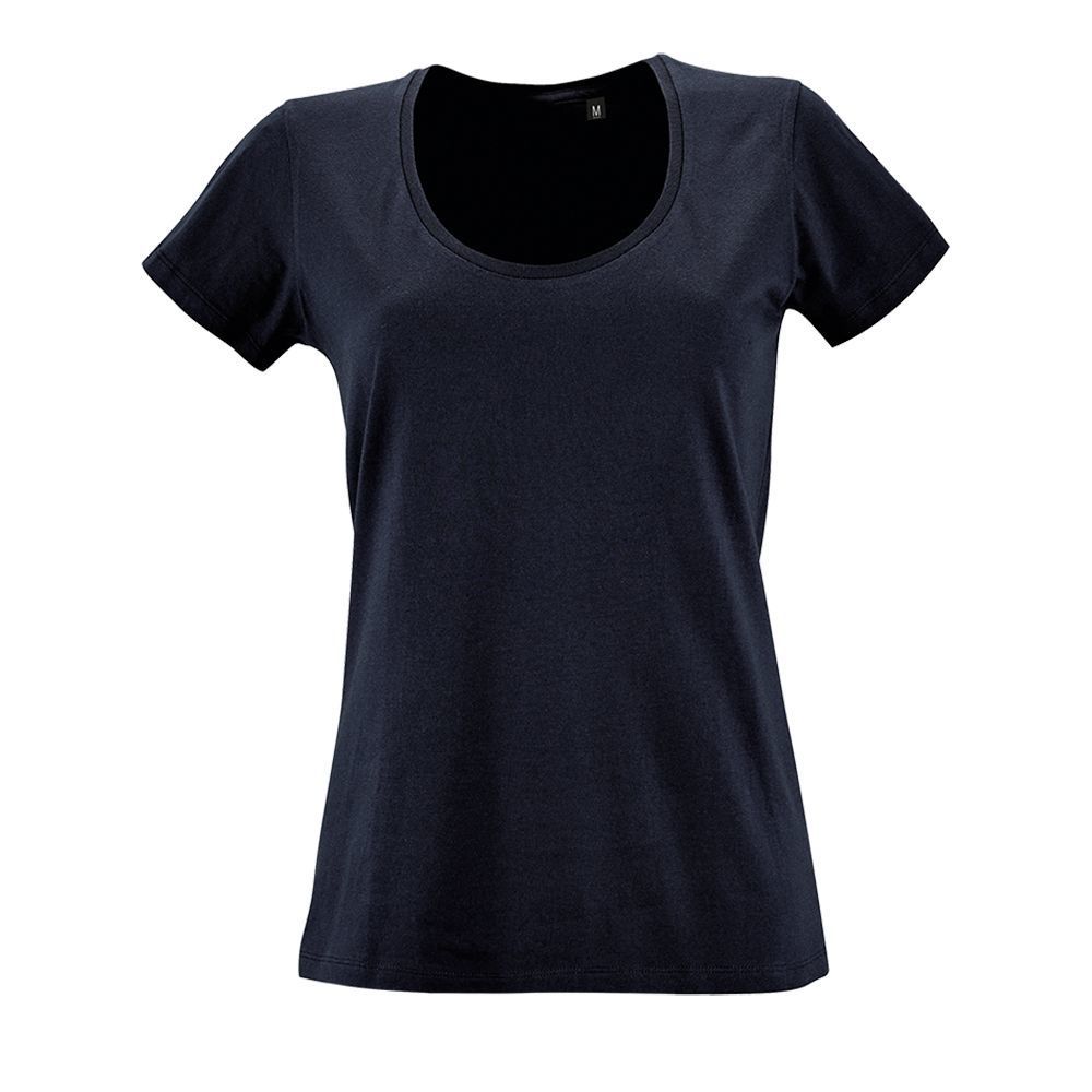 Женственная футболка с глубоким круглым вырезом.
