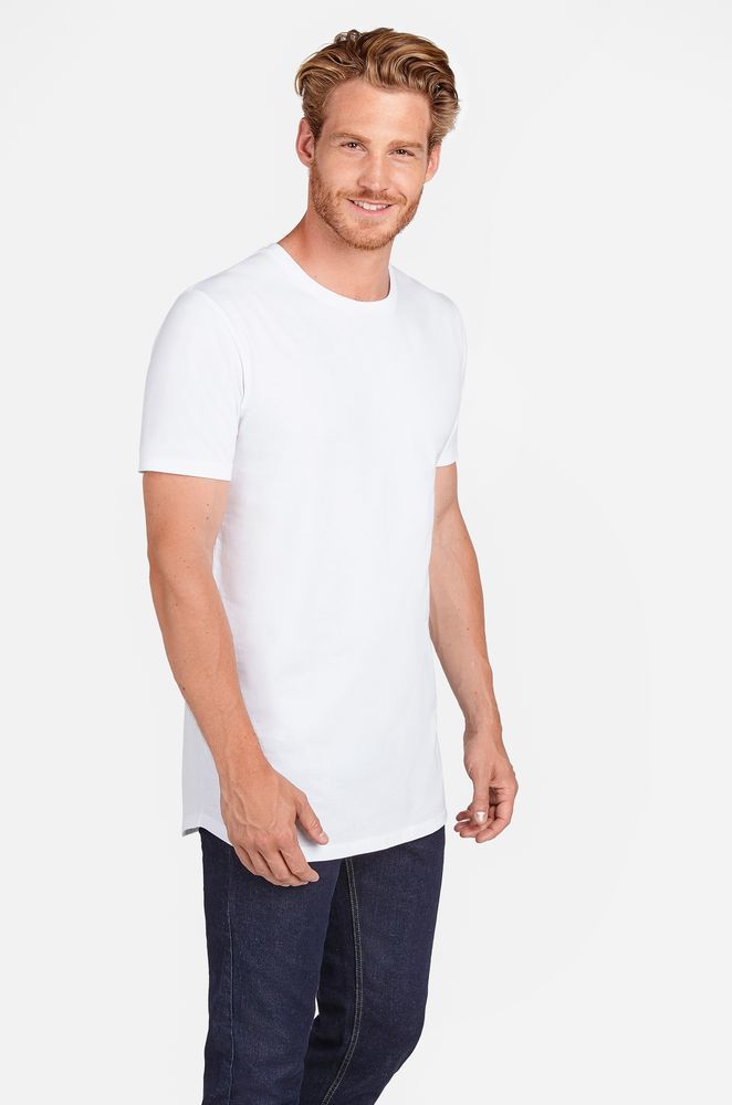 Мужская удлиненная футболка из джерси c боковыми швами и круглым вырезом.